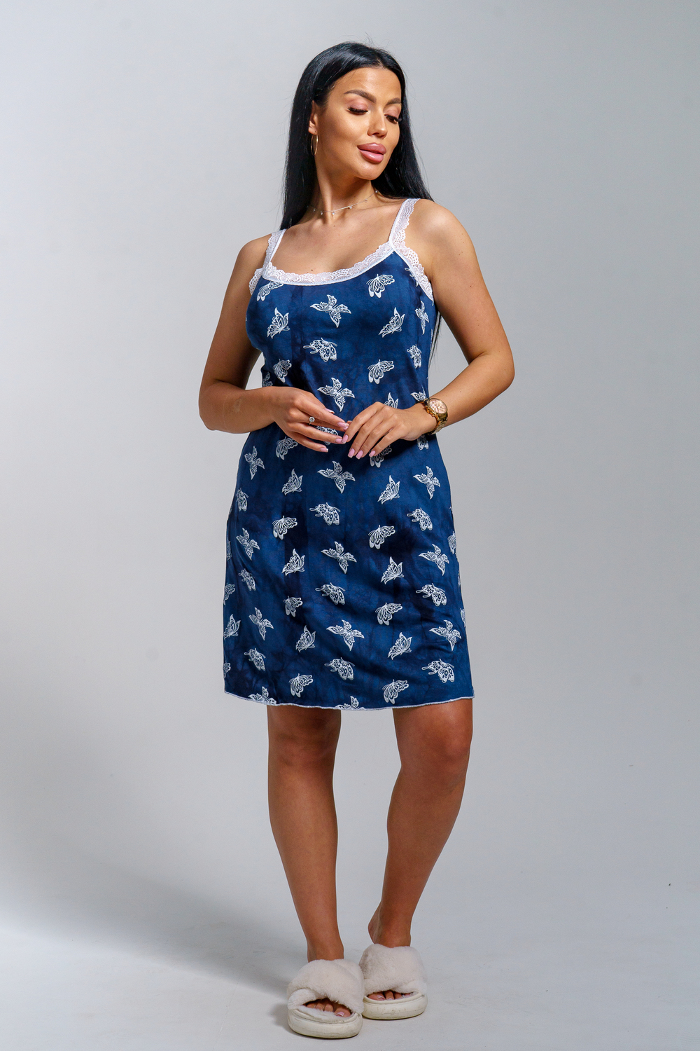 Женская ночная сорочка из вискозы с кружевом Созданная для изысканного вечернего отдыха, эта короткая ночная сорочка сочетает в себе красоту и комфорт. Изготовленная из натуральной вискозы, она нежно облегает тело, обеспечивая приятные ощущения и освежающую прохладу. ? Особенности изделия: ? Состав: Натуральная вискоза высокого качества ? Украшение: Элегантное белое кружево придает изделию утонченности и шарма ? Длина: Короткая длина оптимальна для комфортной ночной одежды ? Размеры: Широкий диапазон размеров от 46 до 56 Такая ночная сорочка станет идеальным решением для вашего ассортимента товаров. Она понравится покупательницам, стремящимся сочетать комфорт и эстетику, предлагая идеальное сочетание цены и качества.