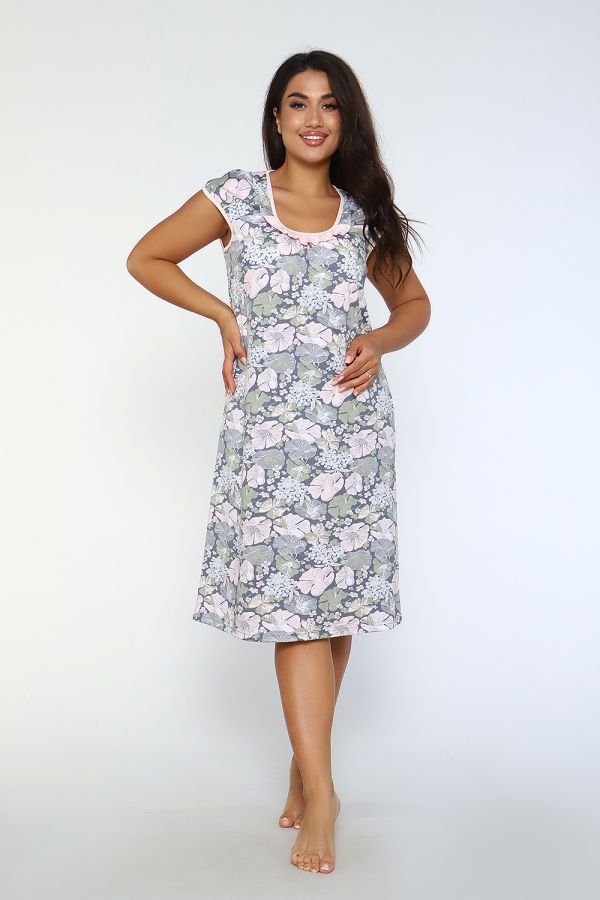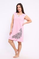 Сорочка женская из кулирки. Светлая окантовка, рукава отсутствуют, на горловине завязки, принт в виде цветов, несколько вариантов расцветки, общая длина чуть выше коленей. Размеры от 44 до 60