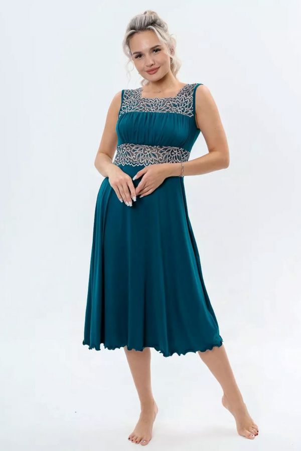 Ночная сорочка длинная прилегающего силуэта, расклешенная к низу от груди – модная и стильная модель, выполненная из мягкой ткани и украшенная эластичным кружевом. Двойная кокетка с верхней задрапированной частью, удачно поддерживает грудь, создавая при этом приятное и комфортное ощущение. Верхние и нижние срезы кокеток и широкие бретели, выполненные из эластичного кружева, обеспечивают отличную посадку на плечах, не сковывают движения и мягко обхватывают тело. Ночнушка изготовлена из вискозной ткани, она мягкая и нежная для осязания, имеет малый вес, хорошо регулирует теплообмен, пропускает воздух, не электризуется, не вызывает раздражение кожи, удерживает цвет. Эта модель рубашки для сна больших размеров прилегающего силуэта является прекрасным выбором для женщин, которые хотят выглядеть красиво и чувствовать себя уютно и расслабленно дома. Она подходит для тех, кто ищет удобную и красивую ночную одежду. Данная модель подходит для девушек и женщин всех возрастов. Рубашка, благодарю крою подойдет для беременных и кормящих мам. Благодаря своей универсальности может использоваться как уютное домашнее платье. Стильное, современное и комфортное платье для дома, которое необходимо в любой сезон. Широкий размерный ряд: от маленьких до больших, сорочка сядет на любую фигуру. Подойдет на любой рост: для высоких, для невысоких и дам среднего роста. Подходящий вариант для каждого возраста. Приобретайте нашу одежду для дома и почувствуйте себя Королевой. Эффектная кружевная ночнушка станет отличным подарком. Ночнушка подойдет для походов в роддом. Сделайте выбор в пользу качественной и стильной одежды и наслаждайтесь приятным сном и отдыхом.