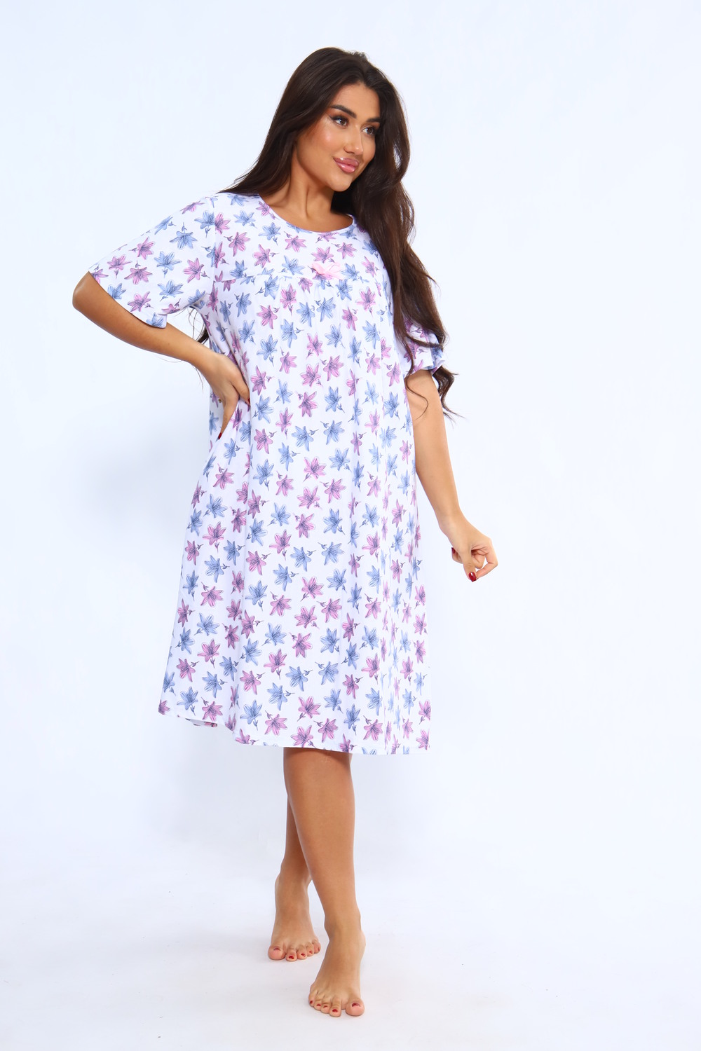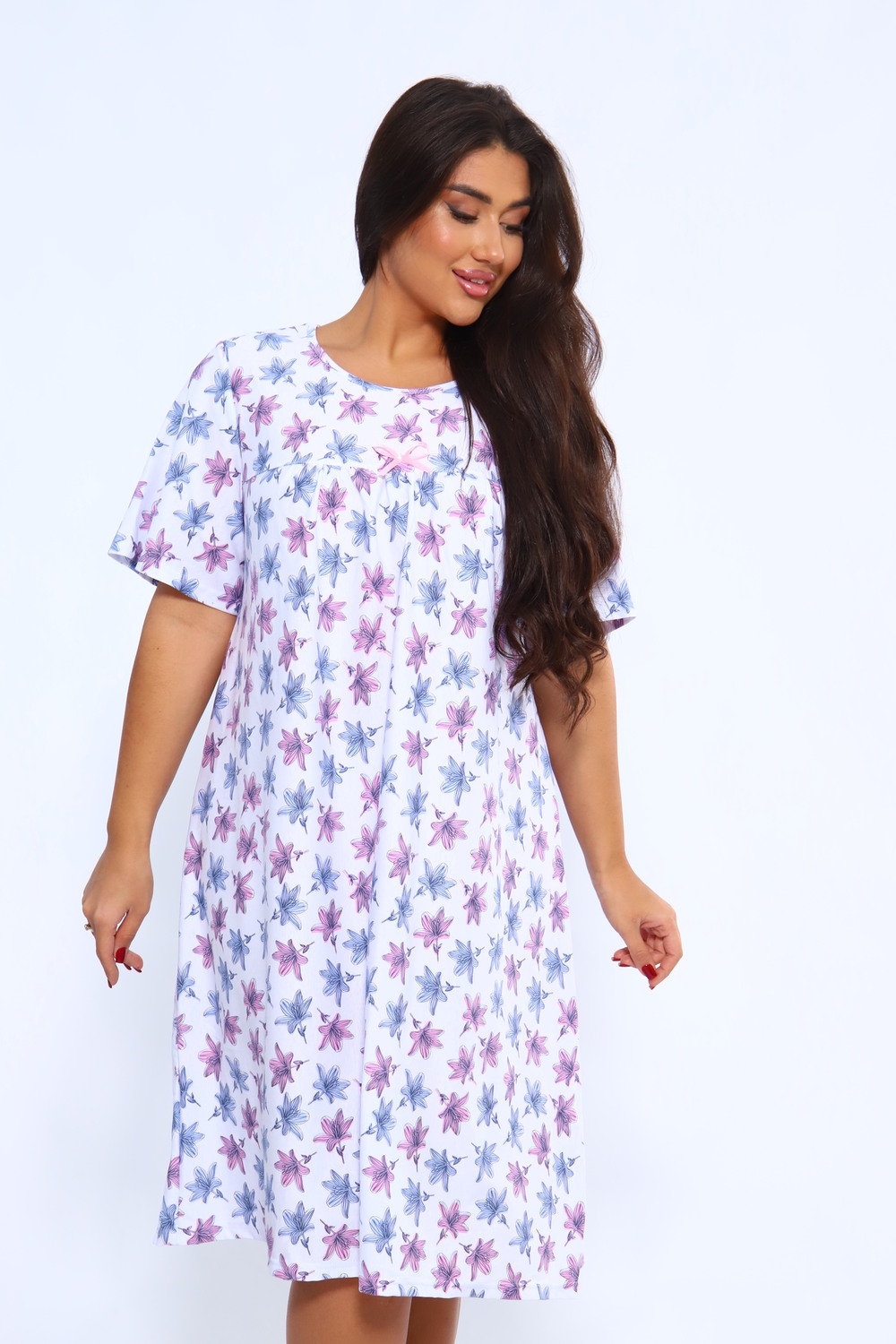 Сорочка женская выполнена из 100 % хлопка, благодаря чему очень приятная к телу. Модель свободного кроя, не сковывает движения во время сна.