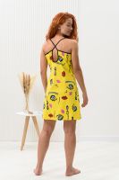 Сорочка на бретелях полуприлегающего силуэта, с разрезами в нижней части боковых швов, длиной выше колена. На полочке вверху обработан фигурный вырез. Проймы и бретели обработаны бейкой из отделочного полотна.