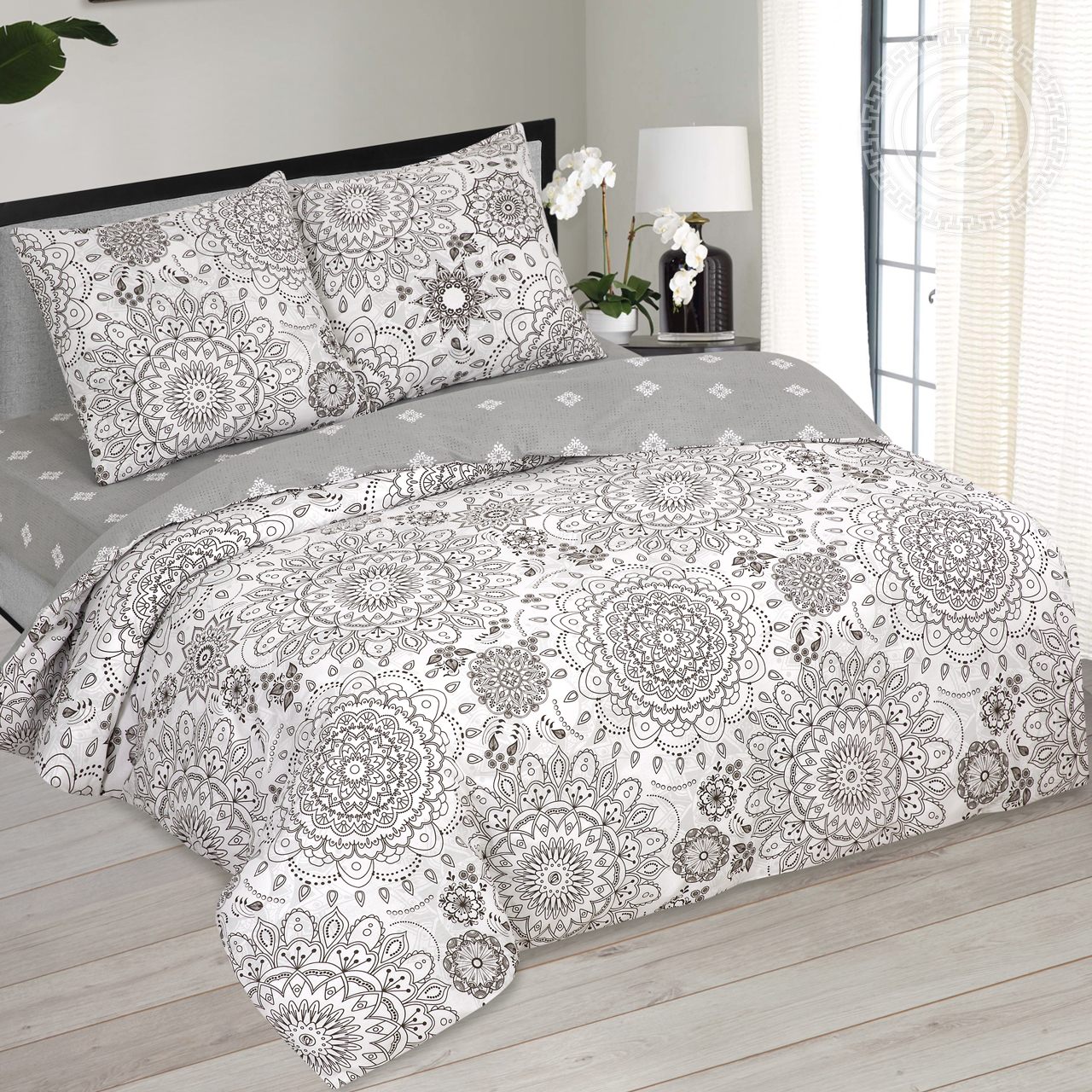 «Сорренто» – это воплощение изящества и элегантности. Это современная классика в новом прочтении. Постельное белье из поплина украшено необычным и очень интересным узором с цветочными и геометрическими деталями. Эксклюзивный орнамент напоминает и старинную мозаику, и модные картины. Насладитесь атмосферой уюта с великолепным «Сорренто».