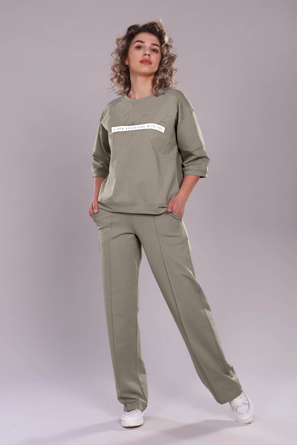 Костюм женский с широкими брюками и свободной кофтой с рукавами 3/4. Модель выполнена из футера 2-х нитки (петля - хлопок).