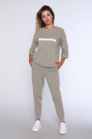 Костюм женский с зауженными брюками и манжетами внизу, на резинке и свободной кофтой с рукавами 3/4. Модель выполнена из футера 2-х нитки (петля - хлопок).