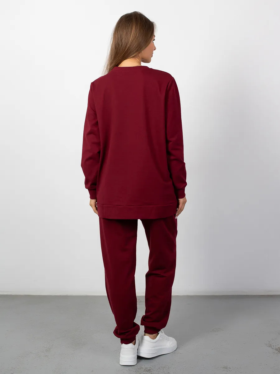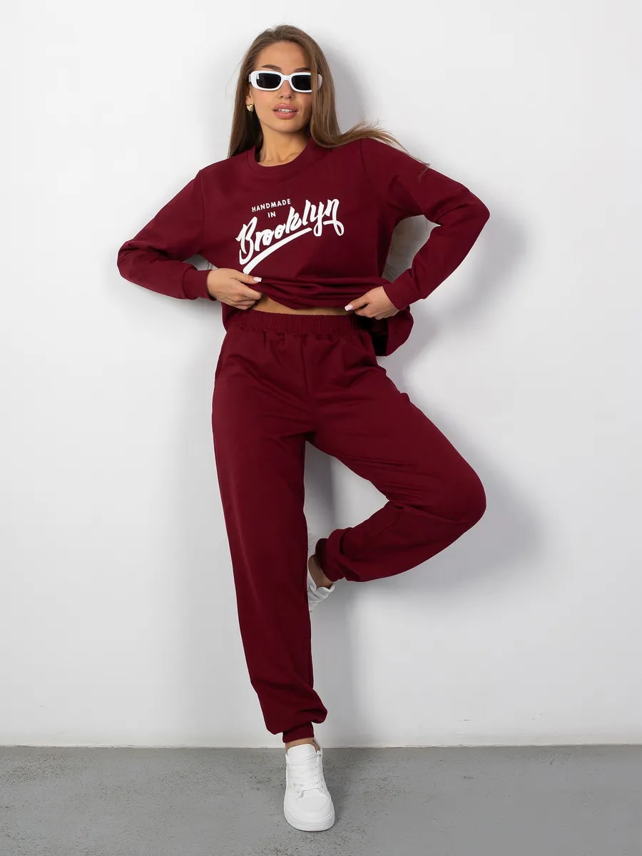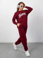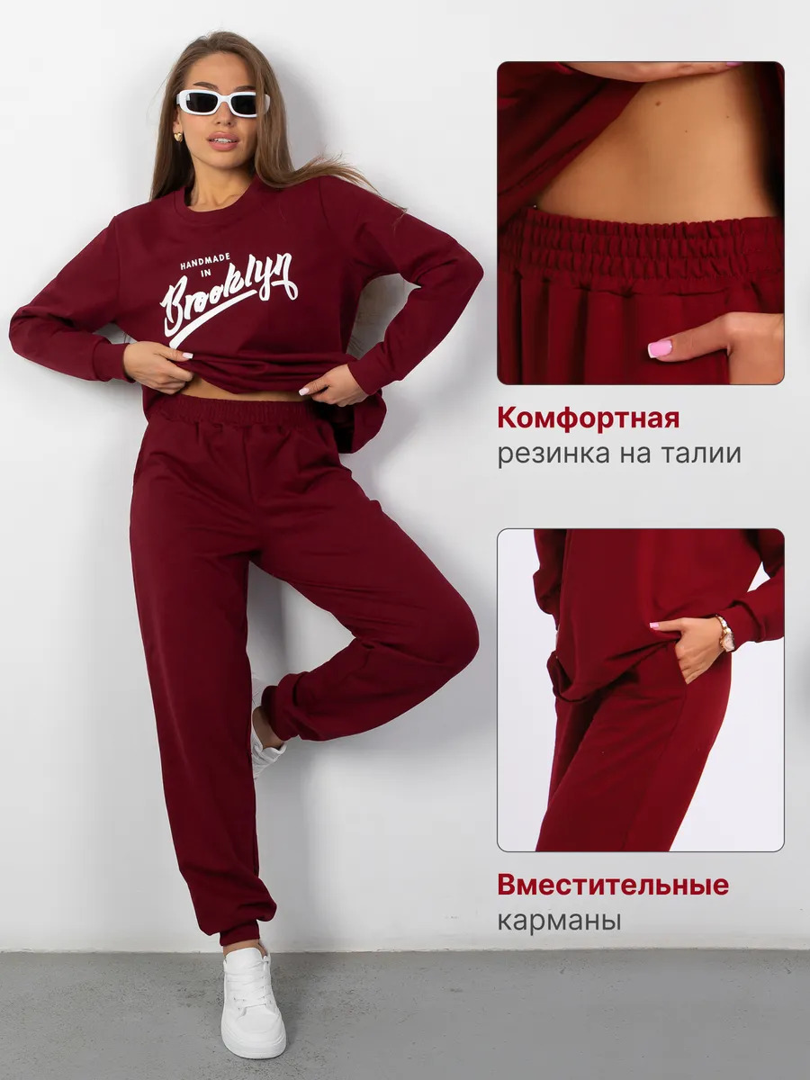 Идеальный осенний костюм для женщин, который сочетает в себе стиль, комфорт и универсальность. Этот спортивный брючный костюм станет незаменимой вещью в вашем гардеробе, будь то для дома, прогулок или тренировок. Изготовленный из футера 2-х нитки, он обеспечивает тепло и уют в любое время года, будь то весна или лето. Костюм состоит из свитшота и джоггеров, выполненных из высококачественного трикотажа, который включает хлопок, полиэстер и лайкру. Такое сочетание материалов делает костюм мягким, приятным на ощупь и долговечным. Хлопковая основа обеспечивает комфорт и воздухопроницаемость, полиэстер добавляет прочности, а лайкра обеспечивает эластичность и свободу движений. Этот костюм идеально подходит для беременных женщин, благодаря свободному крою и оверсайз дизайну. Штаны на резинке и свободный свитшот обеспечивают комфорт и удобство в любой ситуации. Костюм также отлично подходит для фитнеса, бега и тренировок, благодаря своей функциональности и стилю. Модный принт и надпись на свитшоте добавляют костюму молодежный и стильный вид, делая его идеальным выбором для активных и современных женщин. Этот костюм можно носить как дома, так и на улице, благодаря его универсальному дизайну и высокому качеству исполнения. Костюм доступен в различных цветах, что позволяет выбрать базовый вариант, который легко сочетается с другими вещами в вашем гардеробе. Он идеально подходит для летнего сезона, обеспечивая комфорт и стиль. Этот спортивный костюм станет отличным выбором для тех, кто ценит комфорт и стиль в повседневной жизни. Костюм двойка станет вашим надежным спутником в любой ситуации.