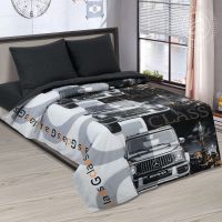 На комплекте из поплина «Статус» один из самых элитных и стильных автомобилей, который точно понравится мальчишкам. Постельное белье для подростков выполнено в лаконичной цветовой гамме и украшено видами ночного города. Кажется, будто внедорожник мчится по дороге мимо светящихся огней, неоновых вывесок и небоскребов. «Статус» - красивый комплект для юных автолюбителей.