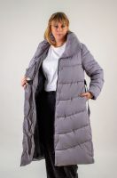 Стеганое пальто с бантом арт. 817 Демисезон., Евро-зима – это идеальное решение для тех, кто ценит гармоничное сочетание практичности и стиля. Модель разработана с учётом особенностей еврозимы и демисезонного сезона, что позволяет комфортно носить её при температуре от –10 °C до +5 °C. Дизайн • Силуэт удлинённой куртки-пальто органично подчёркивает линии фигуры, визуально вытягивая силуэт и создавая элегантный образ. • Объёмный отложной воротник придаёт образу утончённую выразительность и защищает шею от ветра. • Декоративный элемент – широкий чёрный бант из плотной ленты, проходящей через оригинальную пряжку-завязку, – добавляет женственности и лёгкой игривости. Функциональность • Двухзамковая молния с плотной ветрозащитной планкой на кнопках обеспечивает максимальную защиту от холода и сквозняков. • Внутренний утеплитель и современная стёжка-строчка удерживают тепло и не допускают продувания. • Два боковых кармана на молнии позволяют хранить мелочи под надёжной защитой, а трикотажные рукава с манжетами плотно облегают запястья и препятствуют попаданию холодного воздуха. Материалы и уход • Верх – качественный износостойкий полиэстер с водоотталкивающей пропиткой. • Подкладка – лёгкий, дышащий полиэстер, не создающий эффект парника. • Наполнитель – экологичный синтетический утеплитель, сохраняющий тепло даже во влажных условиях. • Уход несложный: машинная стирка при температуре до 30 °C, деликатный отжим, глажка запрещена. Цветовая гамма • Элегантный серый – универсальный, легко комбинируется с любым гардеробом. • Акценты объемный воротник и бант – подчёркивают стиль и лаконичность образа. Почему стоит выбрать стеганое пальто с бантом арт. 817? 1. Универсальность: подходит как для городской жизни, так и для отдыха на загородной прогулке. 2. Комфорт: продуманная конструкция и качественные материалы не стесняют движений и гарантируют тепло в прохладную погоду. 3. Стиль: оригинальные детали – бант, объёмный воротник, – делают модель выразительной и актуальной в любом сезоне. Окунитесь в мир утончённого комфорта и современного дизайна вместе со стёганым пальто арт. 817