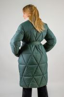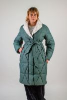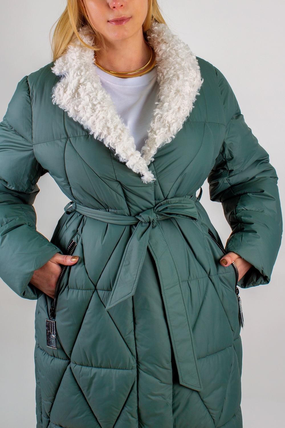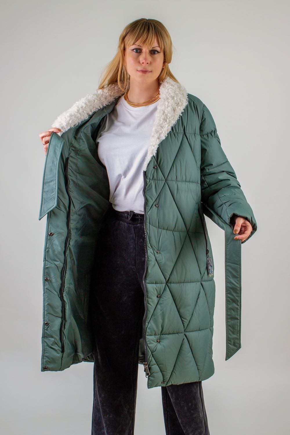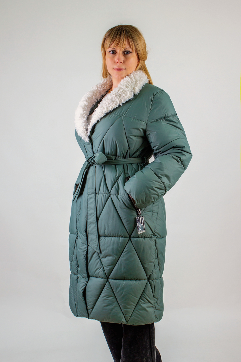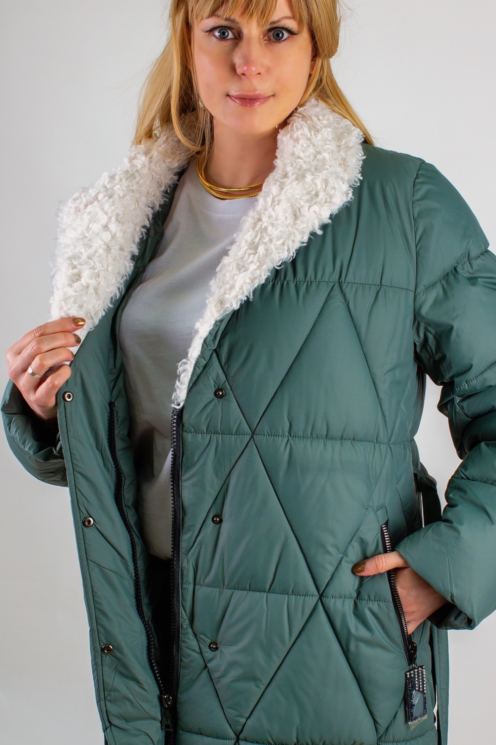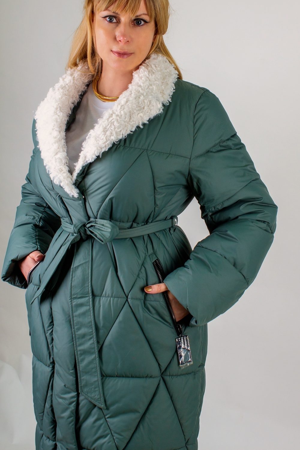 Стеганое пальто с меховой отделкой арт. 2818, демисезон., евро-зима - сочетает в себе изысканный дизайн и комфорт: благодаря удлиненному силуэту она идеально подходит для стильных образов в холодный сезон. Воротник отложенного типа с пушистым мехом «барашек» выполнен из качественного искусственного материала, он нежно прилегает к шее и не вызывает аллергии, обеспечивая дополнительное тепло и уют. Модель оснащена надежной двухзамковой молнией, закрытой декоративной планкой на кнопках, что позволяет регулировать степень утепления и создает аккуратный, завершенный вид. Стеганая ромбовидная прострочка отвечает не только за эстетику, но и за равномерное распределение утеплителя, благодаря чему сохраняется оптимальная температура и отсутствуют «холодные» зоны. Два боковых кармана на молниях удобно расположены по линии бедер и надежно защищают личные вещи от выпадения и влаги, а внутренний карман позволит держать при себе смартфон, паспорт и другие мелочи даже в мороз. Трикотажные рукава на манжетах элегантно облегают запястье, предотвращая проникновение холодного воздуха и создавая ощущение комфорта при движении. Пояс, завязанный на талии, подчеркнет силуэт и добавит образу женственности, позволяя варьировать посадку от свободной и непринужденной до строго прилегающей. Благодаря сочетанию современных утеплителей и качественной отделки модель гарантирует высокую защиту от ветра и мороза при температуре до –15 °C, сохраняя легкость и свободу движений. Бирюзовый и синие оттенки привлекает внимание и гармонично сочетается с другими элементами гардероба, внося в зимнюю палитру яркий акцент. Утонченный крой и внимание к мелочам – качественная прострочка, ровные швы и аккуратная обработка деталей – создают эффект профессионального пошива и придают изделию премиальный статус. Эта куртка-пальто станет универсальным решением для женщин, ценящих сочетание высокой функциональности, модного дизайна и надежной защиты от зимних холодов, позволяя уверенно заявить о вашем вкусе и стиле.