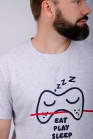 Комфортная мужская пижама из 100% хлопка. Брюки в клетку с боковыми карманами, на эластичном поясе и футболка с коротким рукавом и стильным принтом на полочке.