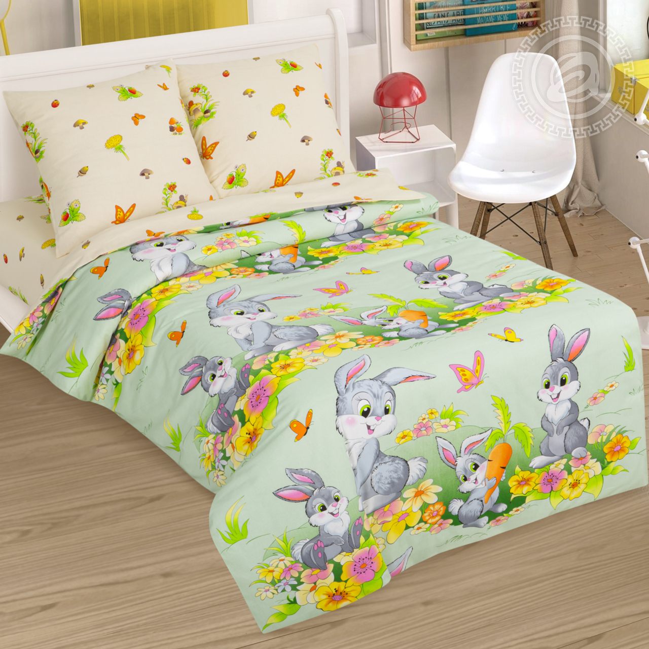На постельном белье из поплина яркий и красивый дизайн с лесными зверятами. В центре композиции – милые и озорные серые зайчата, которые собирают морковку. А вокруг разноцветные душистые цветы, летние ягодки и бабочки, порхающие среди трав. Очаровательный и красочный дизайн с зайчишками понравится мальчишкам и девчонкам и станет удивительным подарком на Новый 2023 год.