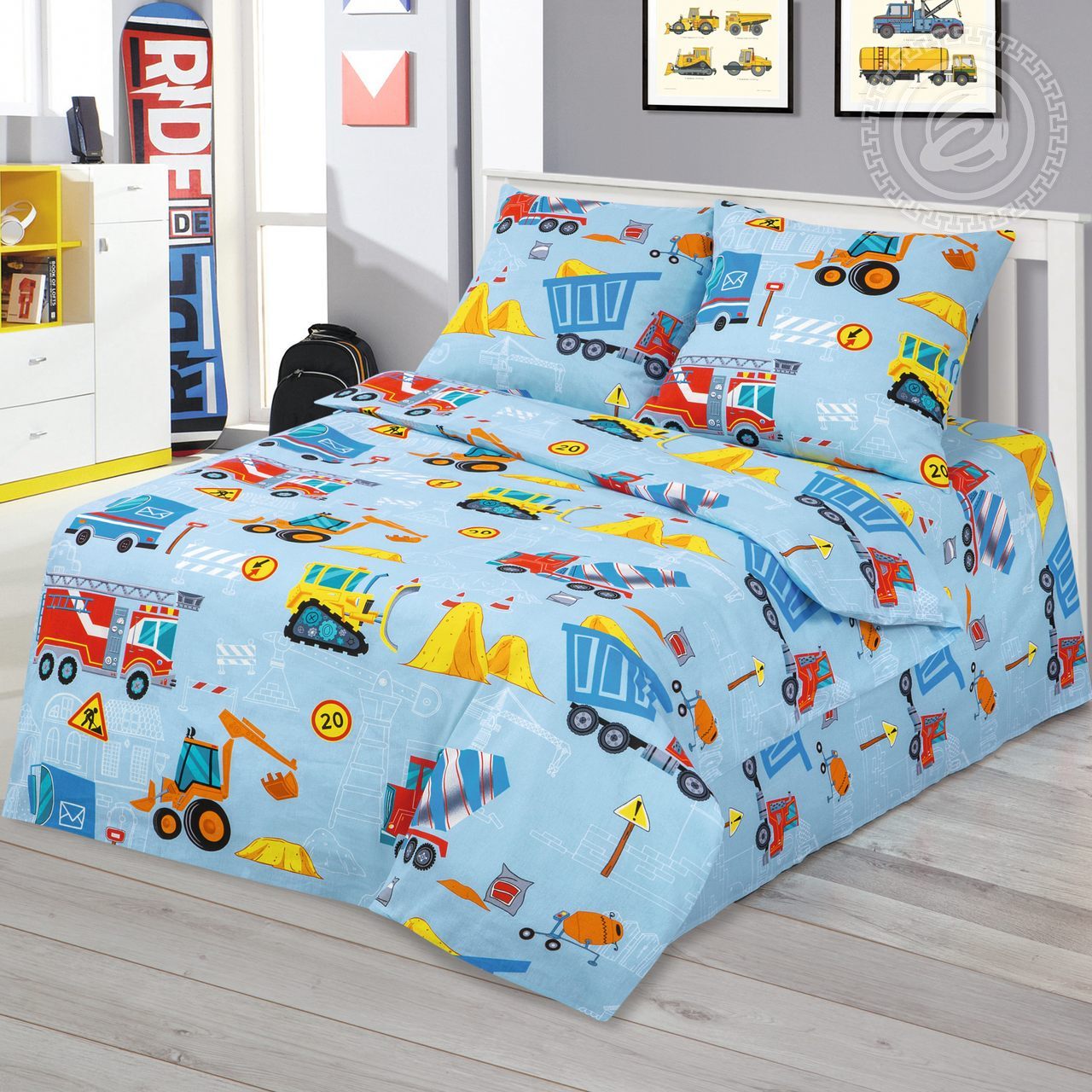 «Строитель» - суперхит для детской комнаты. На постельном белье из бязи яркая композиция, выполненная в красных, желтых, оранжевых и голубых цветах. На рисунке - грузовики и тракторы возят песок и строят дорогу. Мальчишки будут с удовольствием рассматривать детали красочного дизайна. Насыщенный оттенками комплект из 100% хлопка точно понравится деткам и обеспечит комфортный сон.