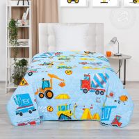 Покрывало защищает постельное белье от загрязнений, а также выполняет декоративную функцию, меняя облик комнаты в лучшую сторону. Снаружи изделия выполнены из материала, в основе которого лежит 100% хлопок. Натуральное волокно не вызывает аллергии и абсолютно безопасно для здоровья. К главным достоинствам бязи относят также высокую воздухопроницаемость и износостойкость. В качестве наполнителя используется полиэфирное волокно. Оно отличается легкостью и высокими теплоизоляционными характеристиками, не впитывает жидкость и сохраняет форму. «Строитель» - суперхит для детской комнаты. На покрывале яркая композиция, выполненная в красных, желтых, оранжевых и голубых цветах. На рисунке - грузовики и тракторы возят песок и строят дорогу. Мальчишки будут с удовольствием рассматривать детали красочного дизайна.