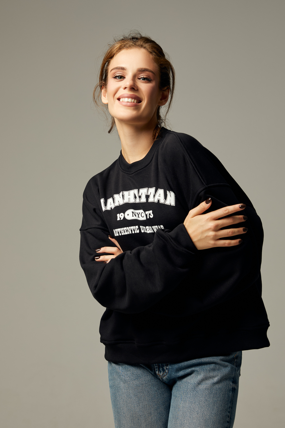 Свитшот с оригинальным принтом, сотканный из ткани премиального качества, словно мягкое объятие, согреет в прохладные дни. Женский свитшот oversize – это чистый холст для вашего воображения, гармонично вписывающийся в любой ансамбль. Дополните его дерзкими аксессуарами: массивными серьгами, экстравагантной сумкой, чтобы раскрыть грани своей индивидуальности и создать образ, уникальный, как отпечаток пальца. Толстовка женская оверсайз – это ваш пропуск в мир непринужденного шика, где уют и стиль переплетаются в едином танце, рождая образ вне времени и трендов.