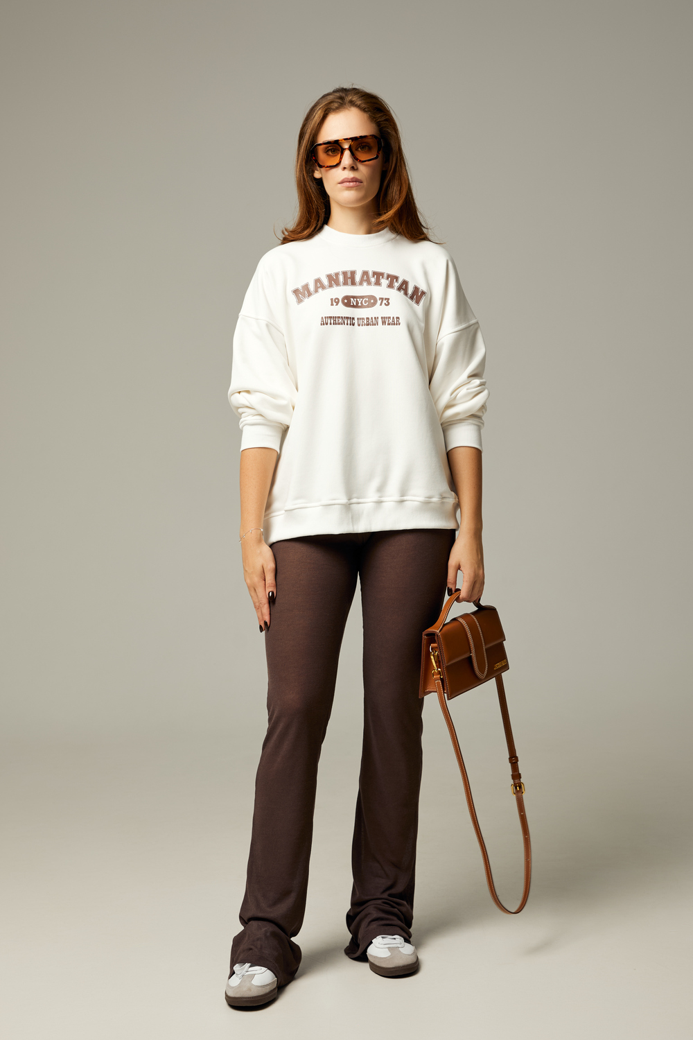 Свитшот с оригинальным принтом, сотканный из ткани премиального качества, словно мягкое объятие, согреет в прохладные дни. Женский свитшот oversize – это чистый холст для вашего воображения, гармонично вписывающийся в любой ансамбль. Дополните его дерзкими аксессуарами: массивными серьгами, экстравагантной сумкой, чтобы раскрыть грани своей индивидуальности и создать образ, уникальный, как отпечаток пальца. Толстовка женская оверсайз – это ваш пропуск в мир непринужденного шика, где уют и стиль переплетаются в едином танце, рождая образ вне времени и трендов.