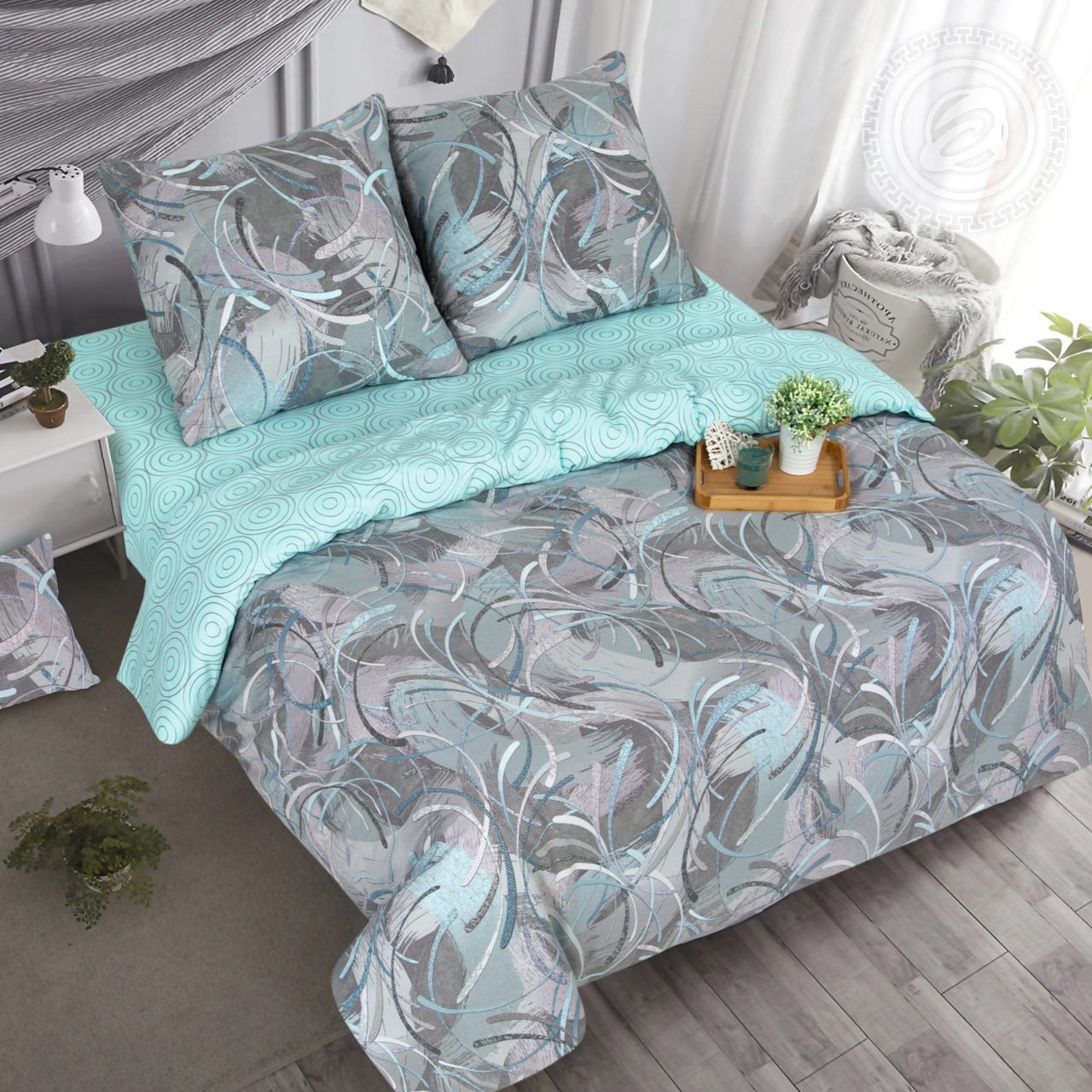 Постельное белье из поплина в серо-голубой комбинации выглядит изысканно, элегантно, утонченно. Композиция с воздушной и будто невесомой абстракцией – это прекрасная картина с нежными узорами, образованными будто взмахами кисти, чудесный танец весенних цветов. «Танго» - идеальный выбор мечтательных и романтичных натур.