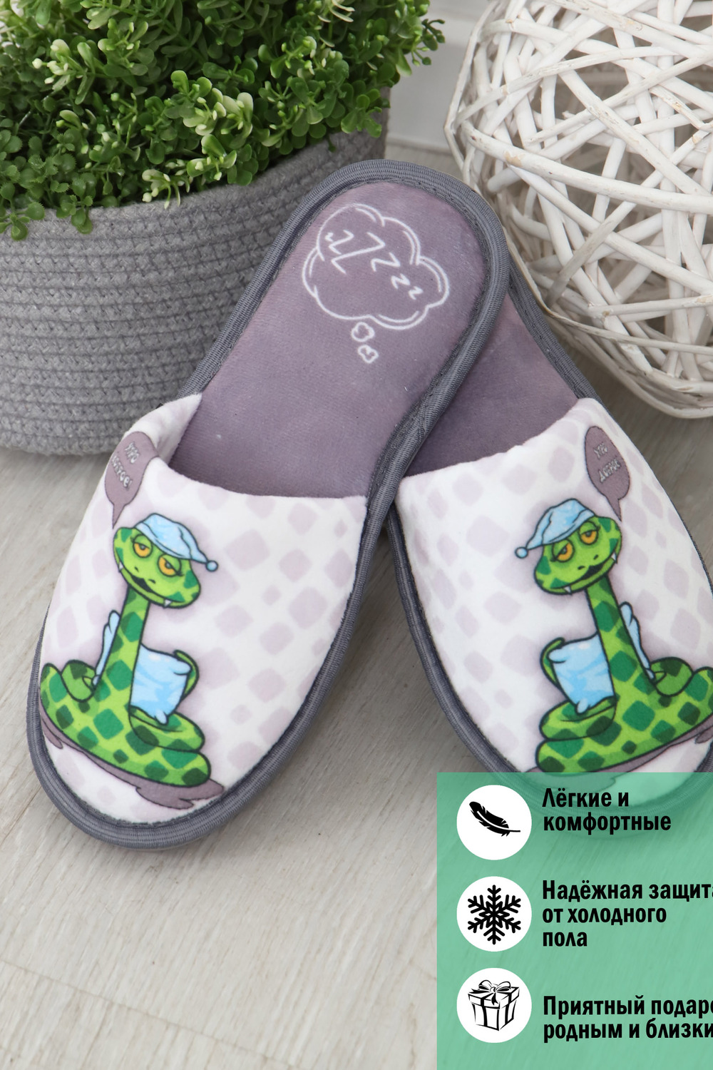 Мягкие домашние тапочки с закрытым носом и открытой пяткой – это идеальный аксессуар для создания уютной атмосферы в вашем доме! Верх и стелька изготовлены из теплых и приятных на ощупь материалов. Подошва изготовленная из высококачественного ПВХ, который еще называют EVA. Обеспечивает отличное сцепление с полом и защиту от скольжения. Это уникальный материал и при всей своей комфортабельности, долго способен выдерживать большие нагрузки Удобные и стильные, эти тапочки с рисунком станут незаменимым аксессуаром вашего домашнего гардероба как зимой, так и в летние дни! Все наши тапки прошиваются для большей износостойкости армированной нитью, а сублимационная печать позволяет наносить краску на волокна ткани, из-за чего цвета получаются насыщенными и сохраняют яркость даже после нескольких стирок. Дизайнерские принты придадут уникальности и поднимут настроение вам и вашим гостям! Кликните на название бренда в карточке товара, чтобы просмотреть весь ассортимент Emotion Day