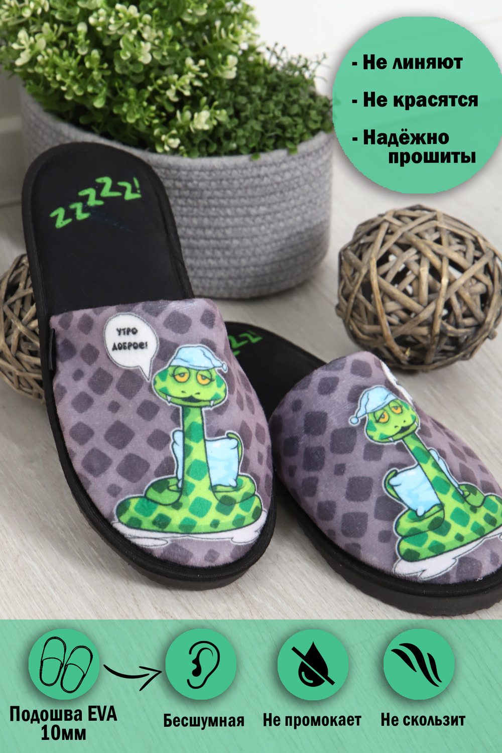 Мягкие домашние тапочки с закрытым носом и открытой пяткой – это идеальный аксессуар для создания уютной атмосферы в вашем доме! Верх и стелька изготовлены из теплых и приятных на ощупь материалов. Подошва изготовленная из высококачественного ПВХ, который еще называют EVA. Обеспечивает отличное сцепление с полом и защиту от скольжения. Это уникальный материал и при всей своей комфортабельности, долго способен выдерживать большие нагрузки Удобные и стильные, эти тапочки с рисунком станут незаменимым аксессуаром вашего домашнего гардероба как зимой, так и в летние дни! Все наши тапки прошиваются для большей износостойкости армированной нитью, а сублимационная печать позволяет наносить краску на волокна ткани, из-за чего цвета получаются насыщенными и сохраняют яркость даже после нескольких стирок. Дизайнерские принты придадут уникальности и поднимут настроение вам и вашим гостям! Кликните на название бренда в карточке товара, чтобы просмотреть весь ассортимент Emotion Day