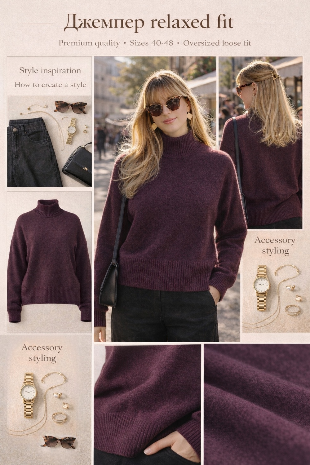 Представляем роскошный джемпер из инновационного материала «эко-кашемир» — мягкой акриловой пряжи премиум-класса, которая по тактильным ощущениям ничем не уступает натуральному кашемиру. Эта модель станет идеальным выбором для тех, кто ценит комфорт, стиль и заботится об окружающей среде. Особого внимания заслуживает изысканный цвет горчичный лайм — сложный, благородный оттенок, сочетающий теплоту горчицы и свежесть лайма. Этот универсальный тон прекрасно вписывается как в осенне-зимнюю, так и в весеннюю палитру гардероба, добавляя образу яркости и индивидуальности. Цвет не выходит из моды уже несколько сезонов и отлично сочетается с базовыми оттенками: черным, серым, бежевым, белым и денимом. Модель оснащена удлиненными рукавами с манжетами, которые полностью закрывают кисти рук, создавая дополнительный комфорт и уют. Такая деталь кроя не только практична в прохладную погоду, но и визуально удлиняет силуэт, добавляя образу стиля. Спущенная линия плеча и свободный крой обеспечивают расслабленную посадку, которая прекрасно смотрится на любой фигуре. Высокий воротник-стойка (полуворот) защищает шею от холода и ветра, при этом не сковывает движений и не создает дискомфорта. Ворот выполнен из эластичной резинки, которая хорошо держит форму и при правильном уходе не растягивается после многократной носки. Материал «эко-кашемир» — это современная альтернатива натуральному кашемиру. Мягкая, шелковистая пряжа приятна к телу, абсолютно не колется и не вызывает раздражения даже у обладательниц чувствительной кожи. Джемпер можно носить на голое тело, наслаждаясь невероятной мягкостью и теплом. Материал отлично сохраняет тепло, при этом дышит и не создает парникового эффекта. Размерный ряд: 40-48 (единый размер, свободный крой). Универсальный размер подходит большинству женщин, создавая идеальную посадку без ограничений. Помимо горчичного лайма, модель доступна еще в трех актуальных оттенках: Зеленый — насыщенный, глубокий цвет, напоминающий о лесной зелени Коричневый — теплый, благородный тон, классика осенне-зимнего гардероба Серый — универсальный базовый оттенок, который станет основой для множества образов Все цвета отлично комбинируются между собой и с другими вещами вашего гардероба. Джемпер не требует сложного ухода: рекомендуется деликатная стирка при температуре до 30°C, без отбеливания и машинной сушки. Материал не скатывается, не деформируется и сохраняет цвет после многочисленных стирок. Идеальный выбор для повседневной носки, работы, прогулок и путешествий. Сочетается с джинсами, брюками, юбками, платьями. Создавайте стильные образы в стилях casual, minimalism, smart casual с одной базовой вещью!
