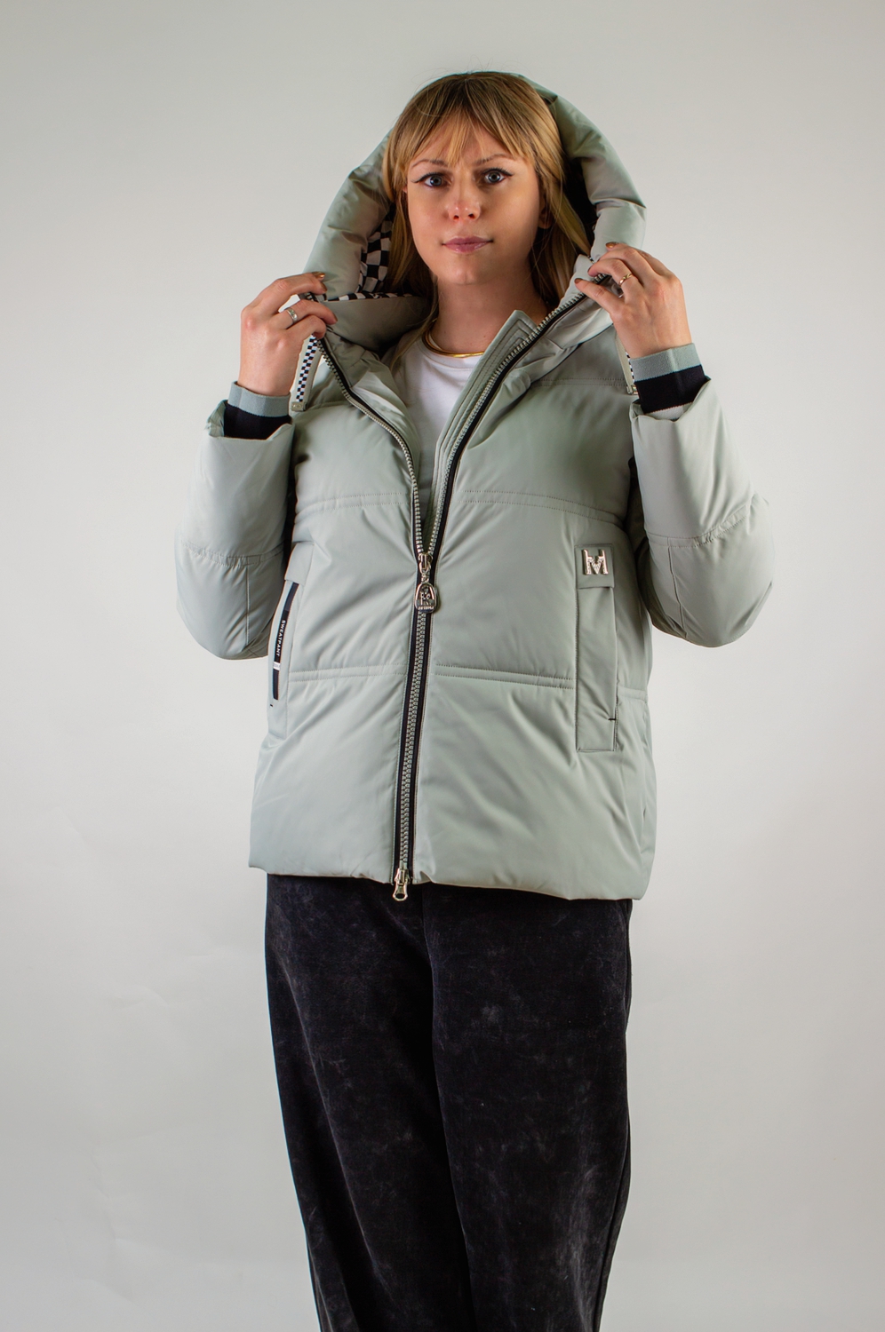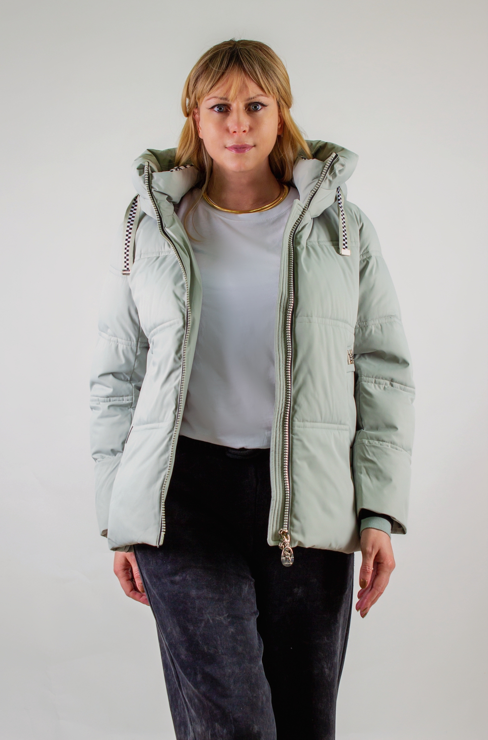Теплая куртка с капюшоном арт.3052 евро-зима, демисезон – универсальное решение для холодного евро-зимнего или демисезонного периода. Модель средней длины продумана до мелочей: удобная посадка позволит свободно чувствовать себя в автомобиле или общественном транспорте, а лаконичный и стильный силуэт впишется в любой городской образ. Капюшон и манжеты отделаны контрастной черно-белой шахматной тканью, которая служит не только стильным акцентом, но и надежной защитой от ветра. Затягивающиеся шнурки на капюшоне и стойке-воротнике позволят плотно зафиксировать тепло в области шеи и головы. Корпус куртки застегивается на двухзамковую молнию с внутренней планкой, скрывающей поток холодного воздуха. Качественная фурнитура подчеркивает продуманность конструкции и гарантирует долгий срок службы. Для удобства в повседневной эксплуатации предусмотрены два боковых кармана на кнопках, куда легко спрятать перчатки или мелкие личные вещи, а также внутренний накладной карман на молнии для телефона или кошелька. Также, достоинство модели – современная стежка двойной строчкой: утеплитель распределен равномерно по всей поверхности, без “проплешин”, что существенно повышает теплоизоляцию. Инновационная деталь: удлиненные трикотажные плотные манжеты в тон основного изделия обеспечивают комфорт при движении и препятствуют попаданию холодного воздуха внутрь. Внутри модели предусмотрен скрытый «тайный» карман – идеальное место для хранения документов или телефона. Матовая ткань верхней части куртки обладает грязе- и влагооталкивающей пропиткой, что гарантирует практичность и эстетику даже в дождливую и слякотную погоду. Доступна в приятных светлых базовых оттенках, которые легко комбинировать с аксессуарами и обувью, создавая свежий, современный образ. Куртка арт. 3052 – это гармония стиля и функциональности: качественный пошив, продуманная конструкция и высококлассные материалы позволят вам оставаться в тепле и комфорте при любых погодных капризах. Отличный выбор для активных городских жителей, ценящих сочетание элегантности и практичности.