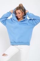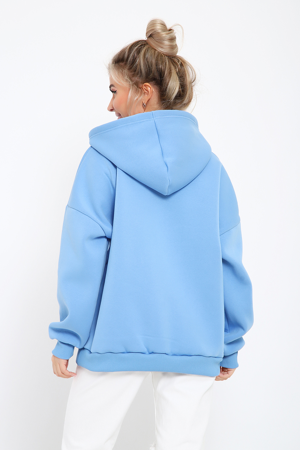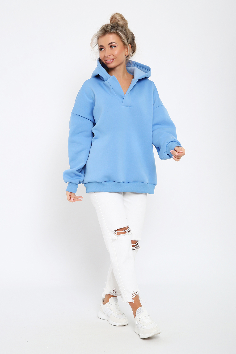 Толстовка свободного кроя с длинными рукавами на спущенном плече и капюшоном. Идеально подойдет для прогулок и активного отдыха.
