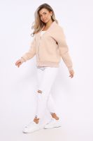 Толстовка на молнии свободного кроя с длинными рукавами на манжетах.