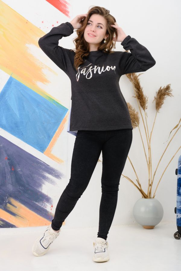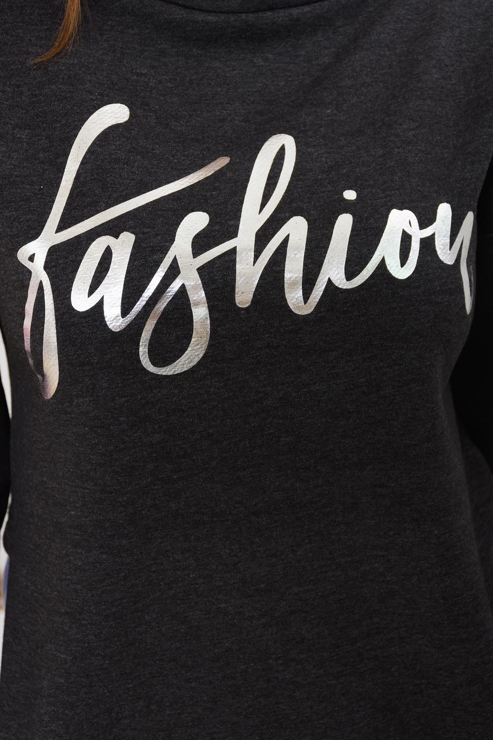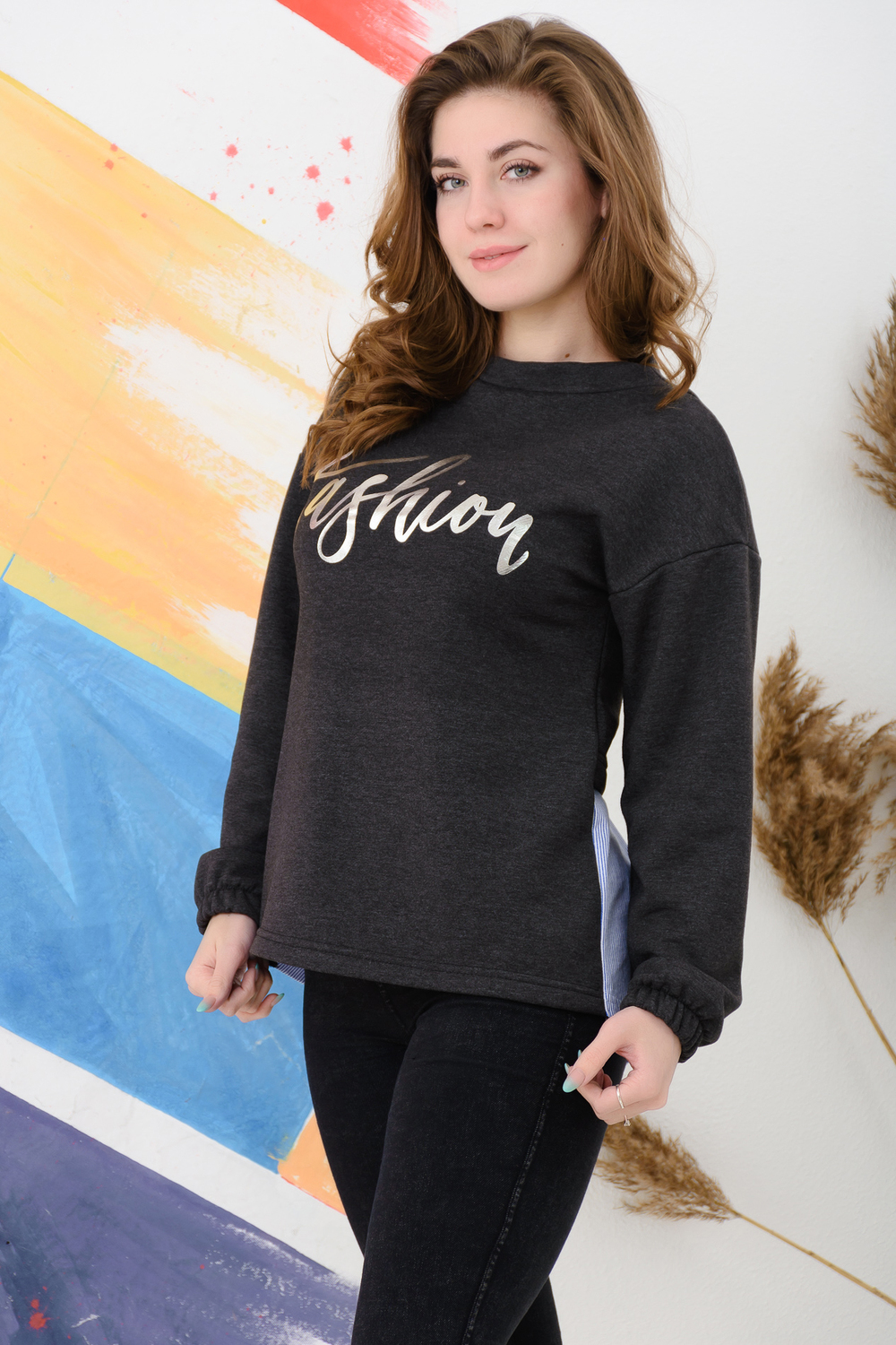 Стильная толстовка с металлизированным принтом в виде надписи. Горловина обработана планкой в виде "лодочки", спущенная пройма, длинный рукав обработан широкой резинкой на запястье. Спинка комбинированная, в стиле "два в одном", что придаёт модели неповторимый образ. Толстовка изготовлена из кулирки и петельчатого футера качества ПЕНЬЕ - это мягкий высококачественный хлопковый трикотаж с добавлением полиэстера. Толстовка свободного покроя, тёплая, комфортная, подойдёт на любую фигуру.