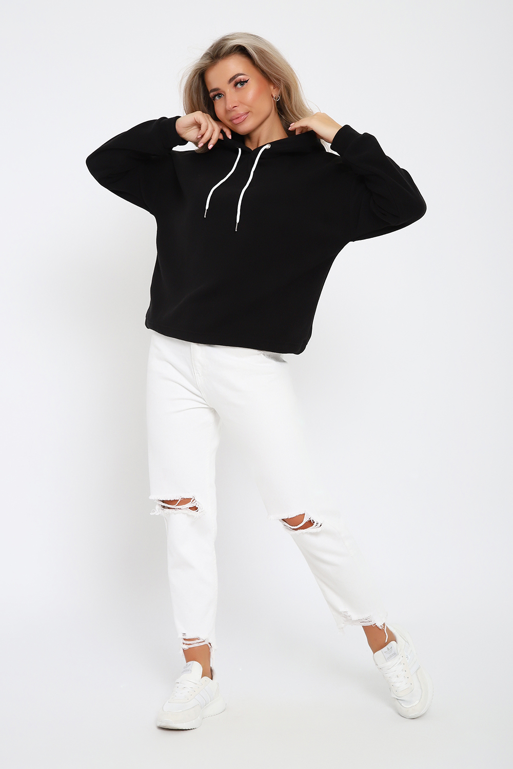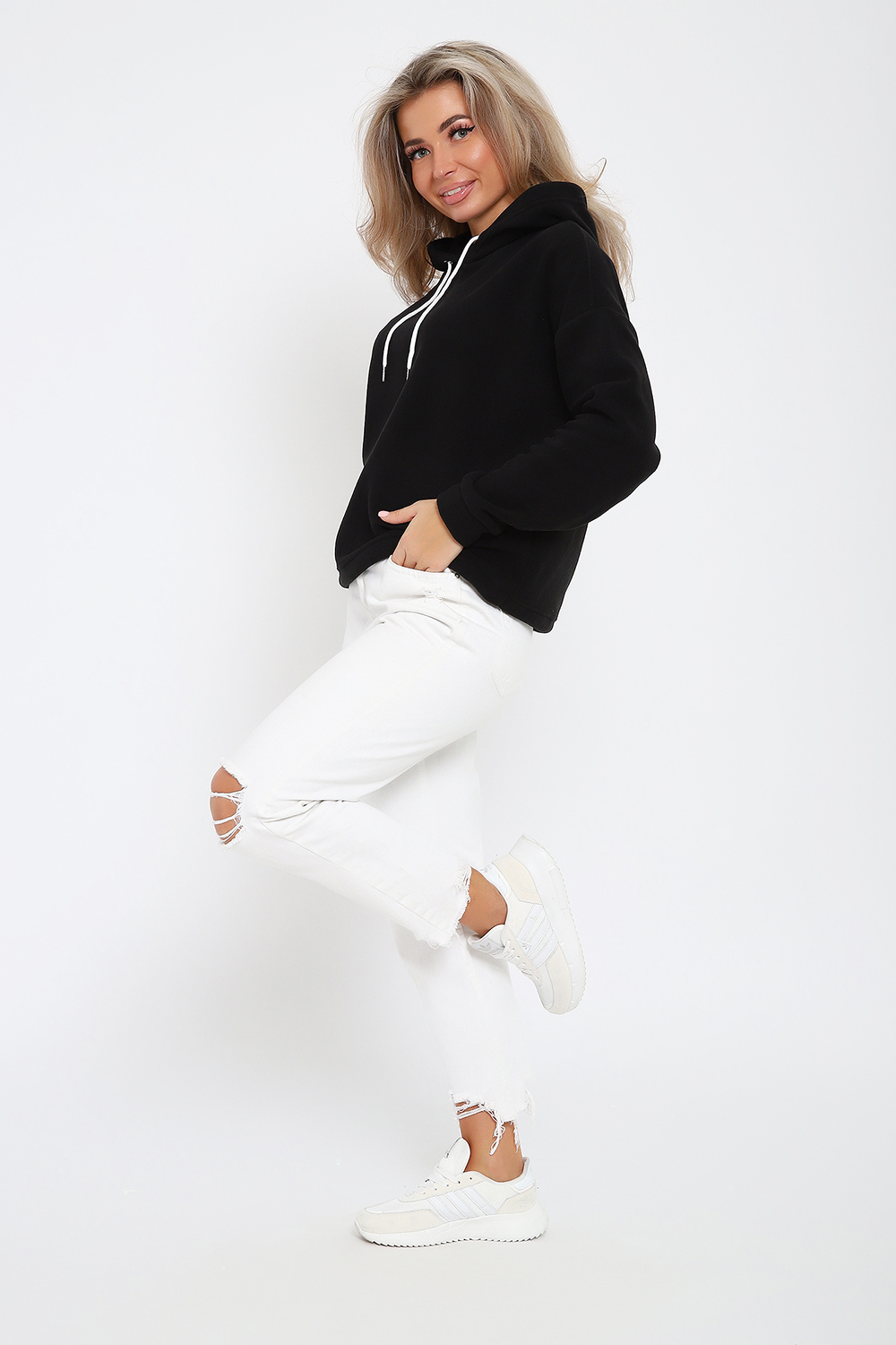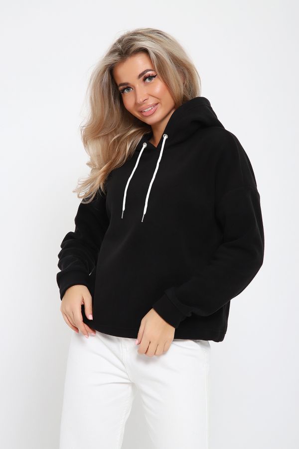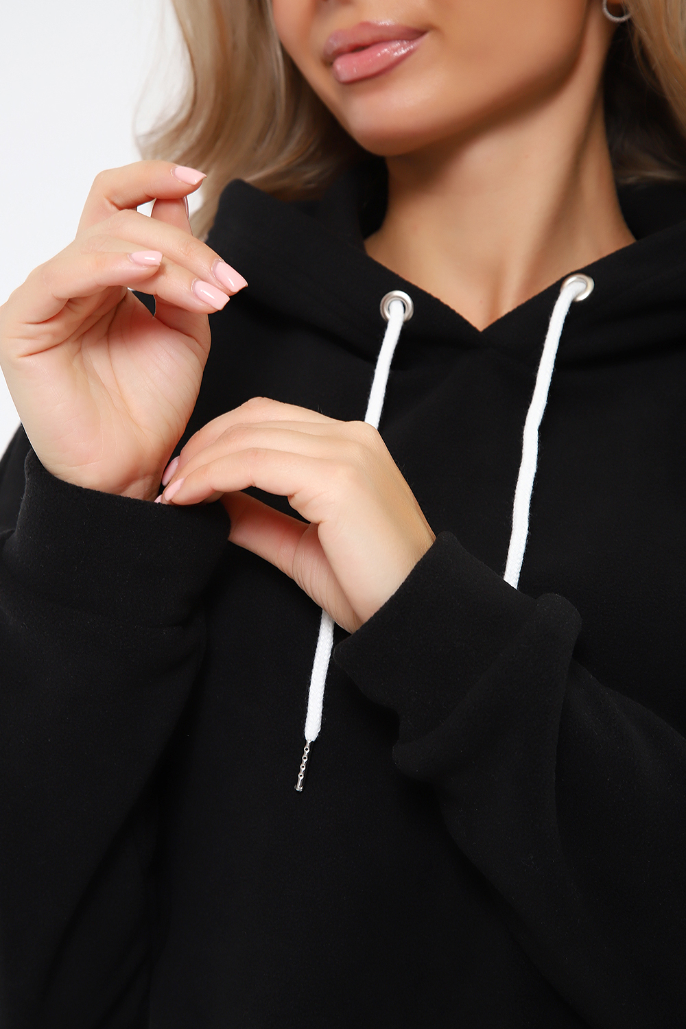 Женская толстовка выполнена из флиса высокого качества. Флис - ткань с ворсистой поверхностью, что позволяет эффективно сохранять тепло. Материал прочный, эластичный, влагостойкий. Хорошо пропускает влагу, при этом не впитывает ее. По теплостойкости превосходит шерсть, но намного легче. Воздухопроницаемая гигроскопичная ткань создает для тела комфортный микроклимат. Материал гипоаллергенный, подходит для изготовления одежды детям, в том числе новорожденным. Изделия из флиса легкие, не мнутся, не деформируются, не вытягиваются. В такой одежде удобно и комфортно. Эластичность материала позволяет легко двигаться. Толстовка с капюшоном и шнурком. Линия плеча спущена, длинный рукав. По низу толстовки имеется резинка с фиксатором, с помощью которой Вы можете собрать изделие как вам хочется и нравится. Свободный крой прекрасно будет смотреться на дамах с любыми формами. Толстовка такого плана представлена в широкой размерной сетке, что позволяет выбрать её как девушке, так и женщине. Однотонная толстовка модных расцветок будет удачным выбором для поездок в отпуск, на пикник, для школы, для активного отдыха и прогулок по городу. Будет гармонично сочетаться с брюками, джинсами, кроссовками и ботинками. Используя эту модель в качестве домашней одежды Вы поймёте, что это именно тот самый идеальный вариант, в котором будете себя чувствовать удобно, комфортно и современно. Толстовка - это настоящая находка для тех, кто ценит свою индивидуальность! Ориентируясь по таблице замеров, обратите внимание, что замеры длины рукава проводились от точки основания шеи.