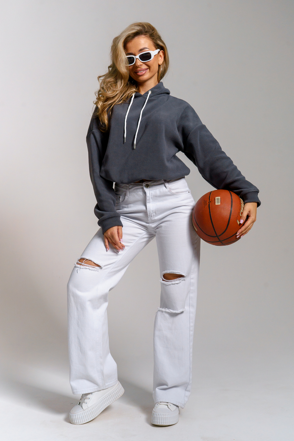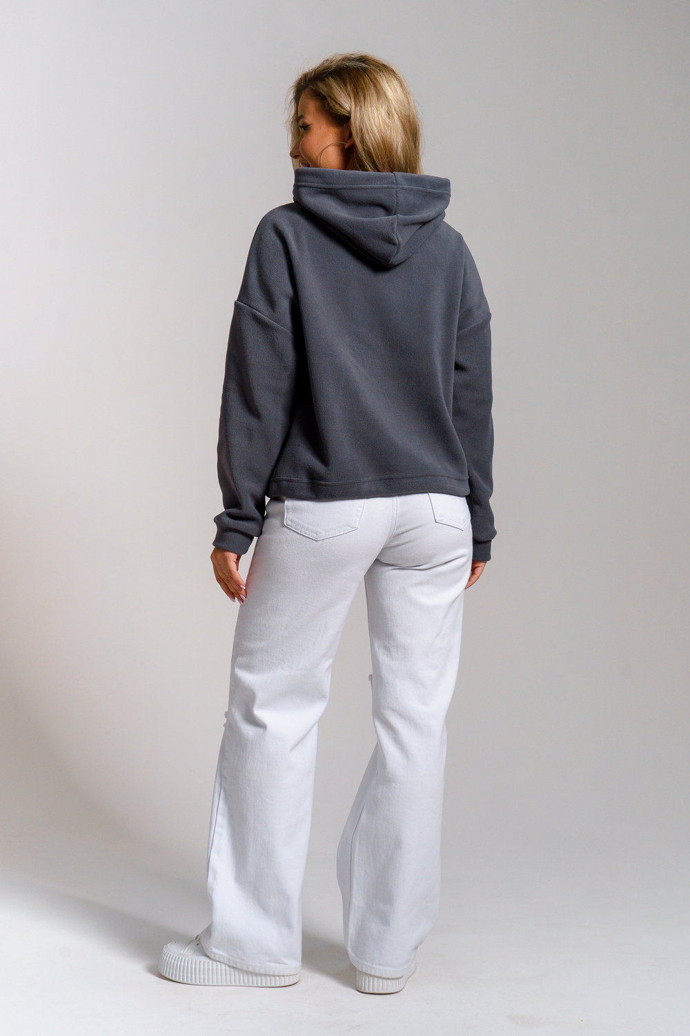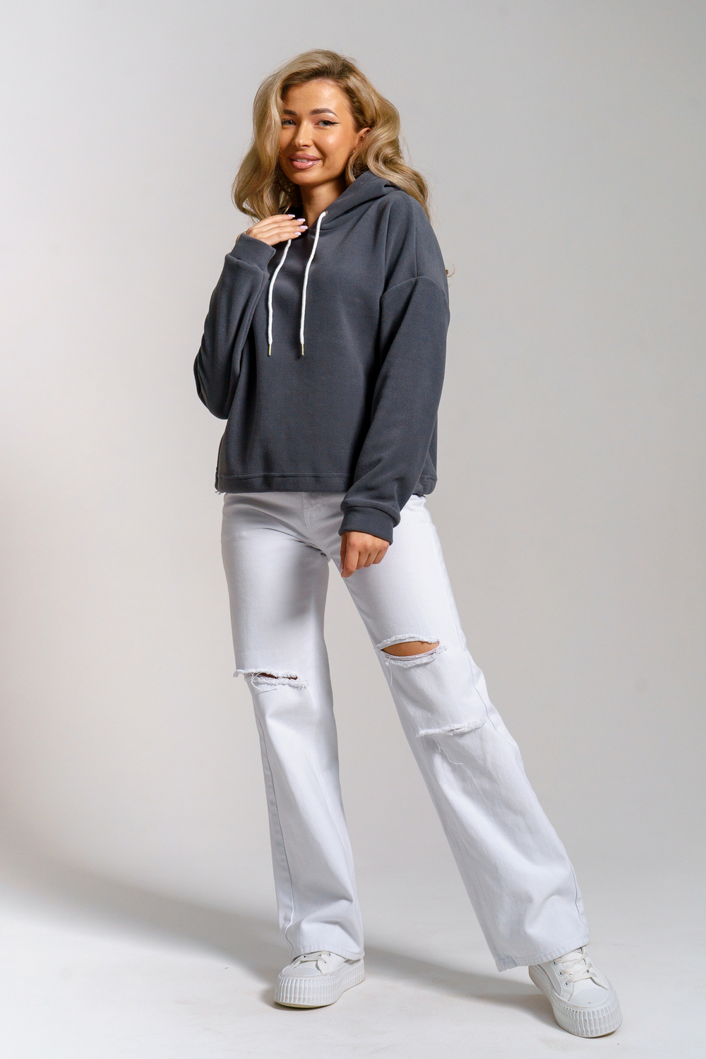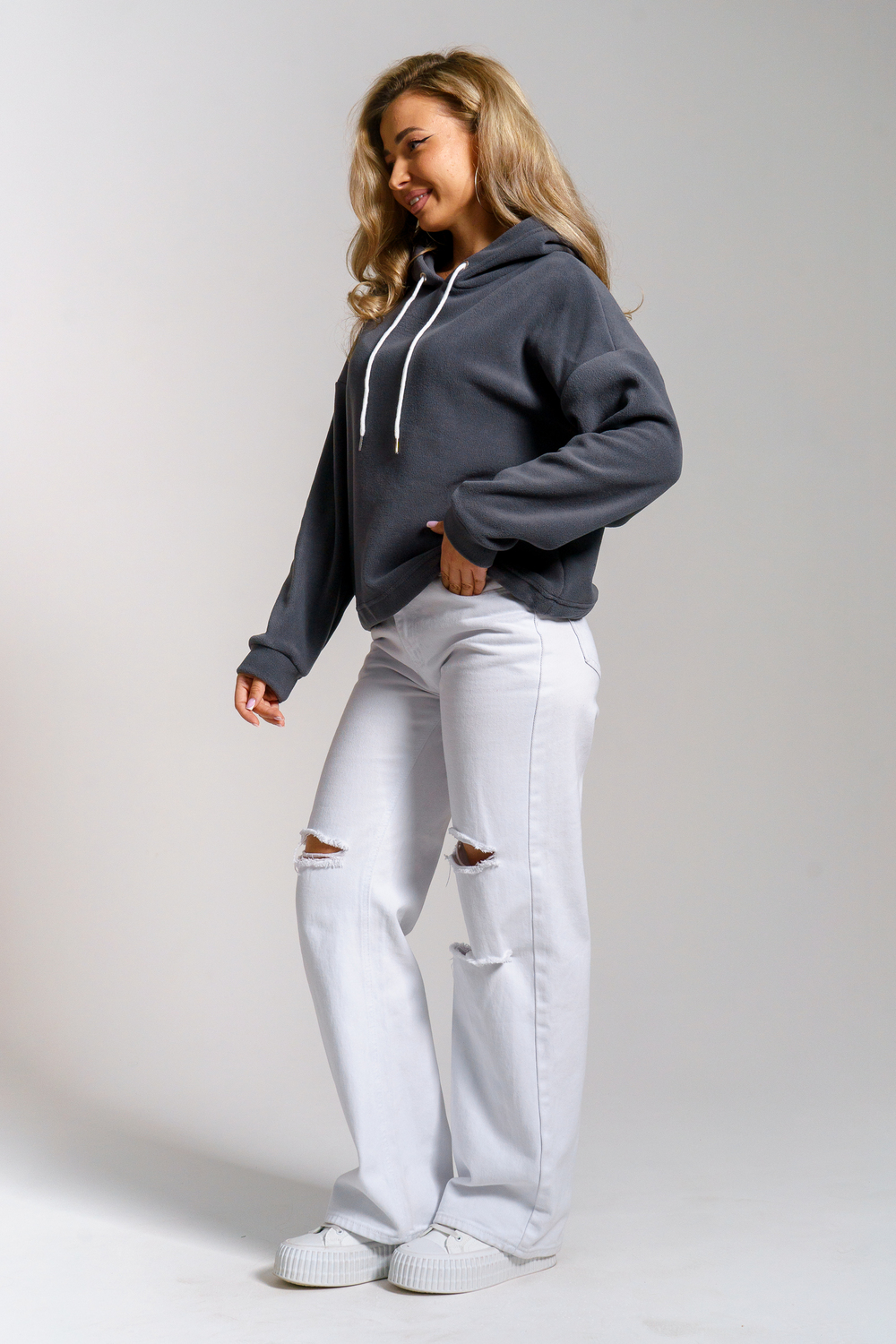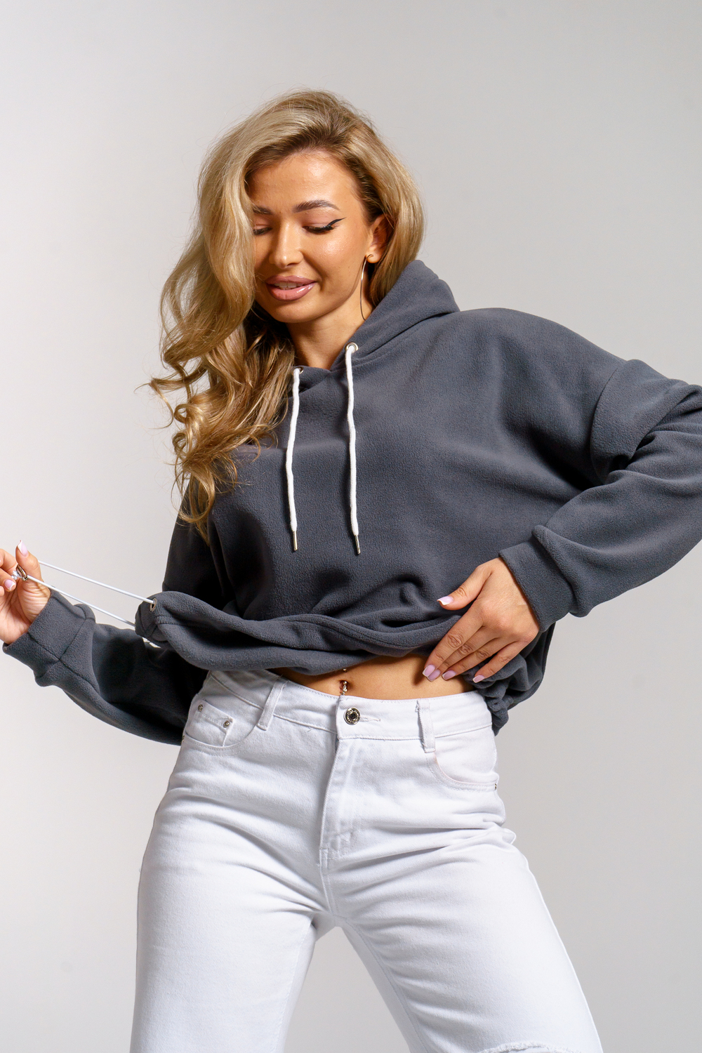 Женская толстовка выполнена из флиса высокого качества. Флис - ткань с ворсистой поверхностью, что позволяет эффективно сохранять тепло. Материал прочный, эластичный, влагостойкий. Хорошо пропускает влагу, при этом не впитывает ее. По теплостойкости превосходит шерсть, но намного легче. Воздухопроницаемая гигроскопичная ткань создает для тела комфортный микроклимат. Материал гипоаллергенный, подходит для изготовления одежды детям, в том числе новорожденным. Изделия из флиса легкие, не мнутся, не деформируются, не вытягиваются. В такой одежде удобно и комфортно. Эластичность материала позволяет легко двигаться. Толстовка с капюшоном и шнурком. Линия плеча спущена, длинный рукав. По низу толстовки имеется резинка с фиксатором, с помощью которой Вы можете собрать изделие как вам хочется и нравится. Свободный крой прекрасно будет смотреться на дамах с любыми формами. Толстовка такого плана представлена в широкой размерной сетке, что позволяет выбрать её как девушке, так и женщине. Однотонная толстовка модных расцветок будет удачным выбором для поездок в отпуск, на пикник, для школы, для активного отдыха и прогулок по городу. Будет гармонично сочетаться с брюками, джинсами, кроссовками и ботинками. Используя эту модель в качестве домашней одежды Вы поймёте, что это именно тот самый идеальный вариант, в котором будете себя чувствовать удобно, комфортно и современно. Толстовка - это настоящая находка для тех, кто ценит свою индивидуальность! Ориентируясь по таблице замеров, обратите внимание, что замеры длины рукава проводились от точки основания шеи.