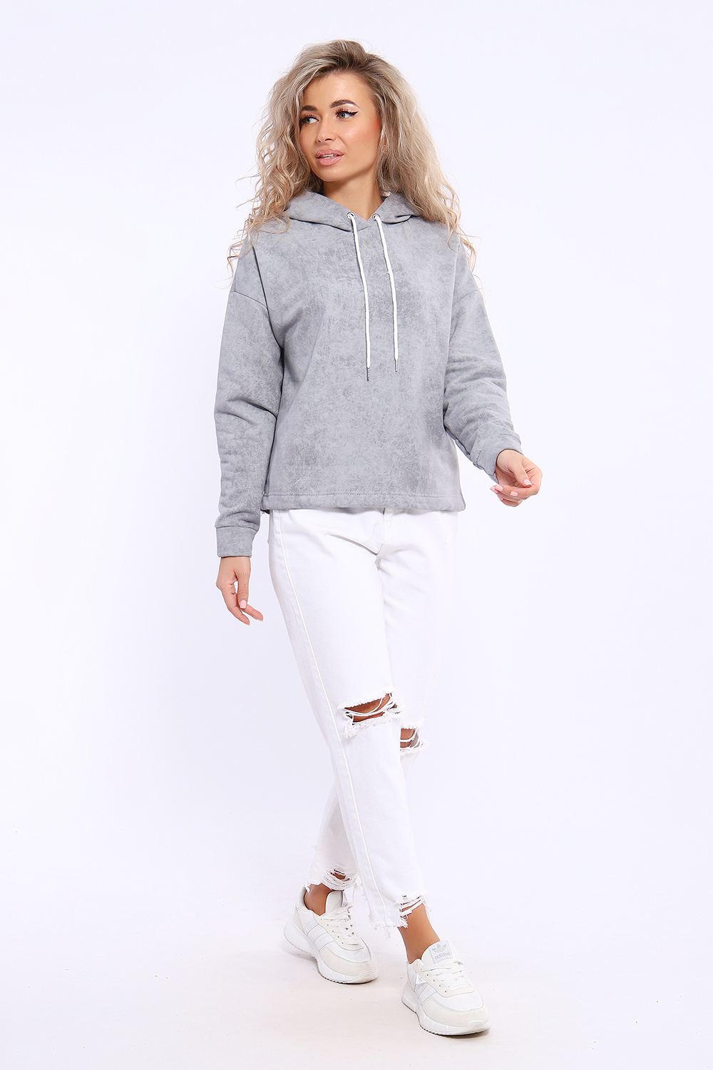 Женская толстовка выполнена из футера на меху высокого качества с дизайном варёнка. Вареная ткань - особым образом обработанная ткань, что придает ей некий красивый, специфический цвет. Эта ткань обладает мягкой текстурой и повышенной теплоизоляцией благодаря наличию меха. Она сочетает в себе прочность, что делает ее отличным вариантом для пошива спортивной одежды. Материал отличается уникальными свойствами: футер на меху способен удерживать тепло, обеспечивая максимальный комфорт в холодное время года. Его хорошо использовать для изготовления теплых толстовок и костюмов. Ткань выполнена из высококачественного сырья и обладает высокой износостойкостью. Она не теряет форму после стирки и не выцветает, что гарантирует долгий срок службы вашего изделия. Толстовка с капюшоном и шнурком. Линия плеча спущена, длинный рукав. По низу толстовки имеется резинка с фиксатором, с помощью которой Вы можете собрать изделие как вам хочется и нравится. Свободный крой прекрасно будет смотреться на дамах с любыми формами. Толстовка такого плана представлена в широкой размерной сетке, что позволяет выбрать её как девушке, так и женщине. Толстовка модных расцветок будет удачным выбором для поездок в отпуск, на пикник, для школы, для активного отдыха и прогулок по городу. Будет гармонично сочетаться с брюками, джинсами, кроссовками и ботинками. Ориентируясь по таблице замеров, обратите внимание, что замеры длины рукава проводились от точки основания шеи.