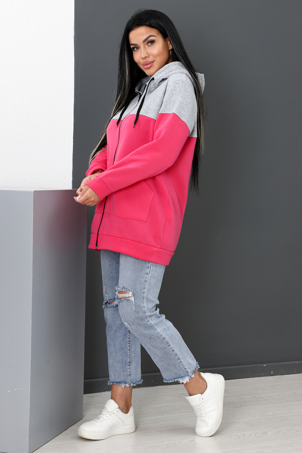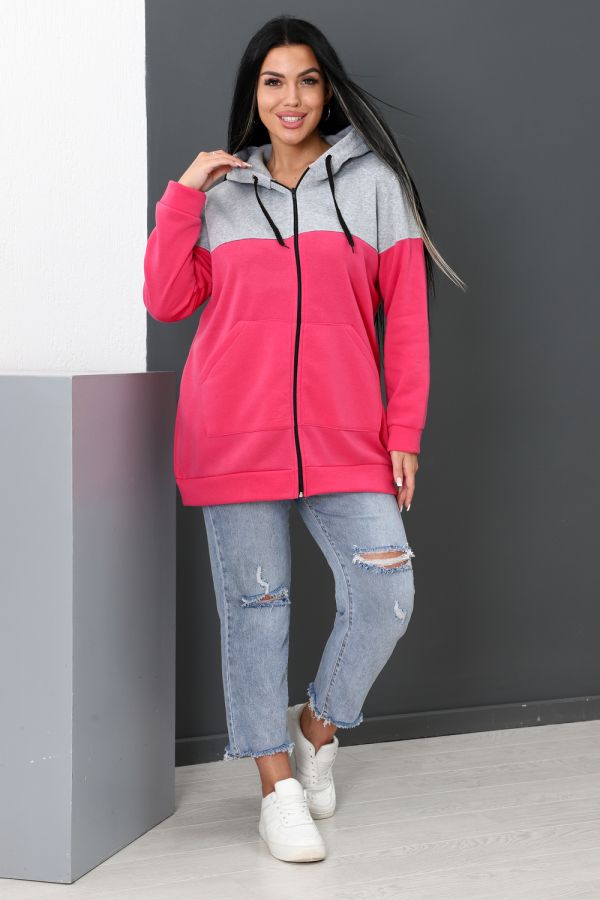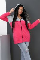Толстовка женская на молнии, с капюшоном на шнуровке через люверсы. Накладные карманы "кенгуру", рукав и низ изделия на манжете. Теплая и удобная.