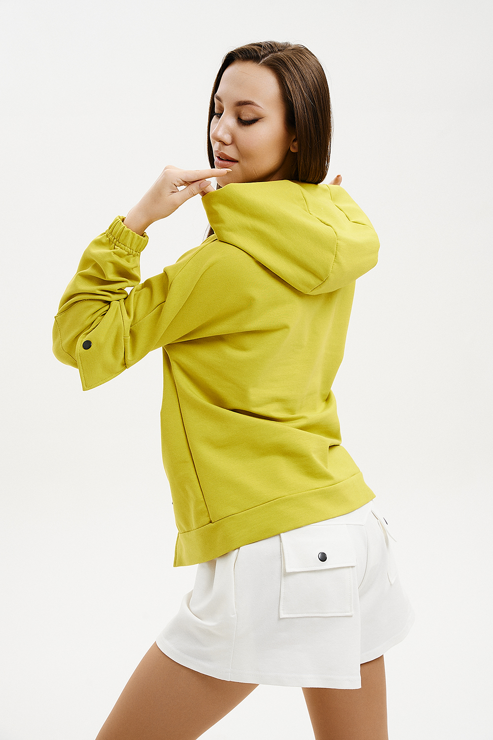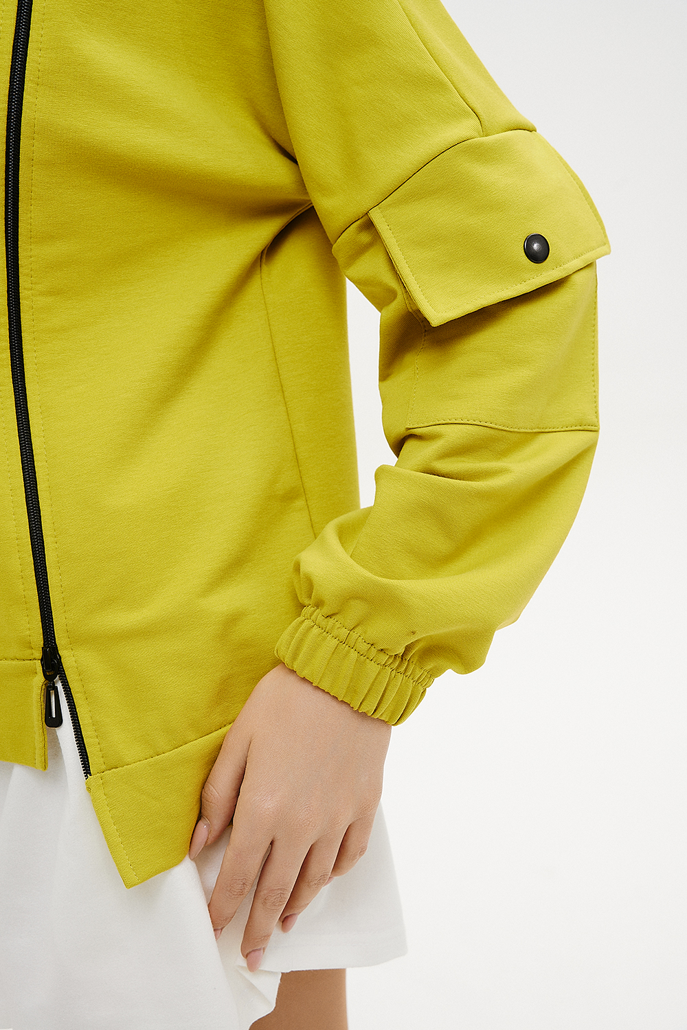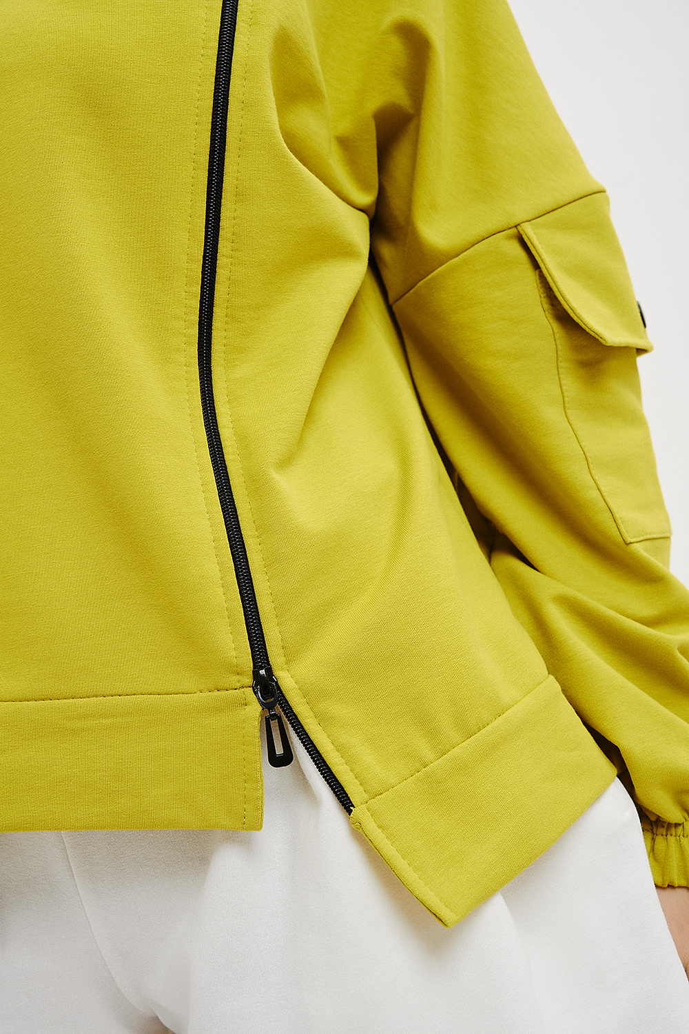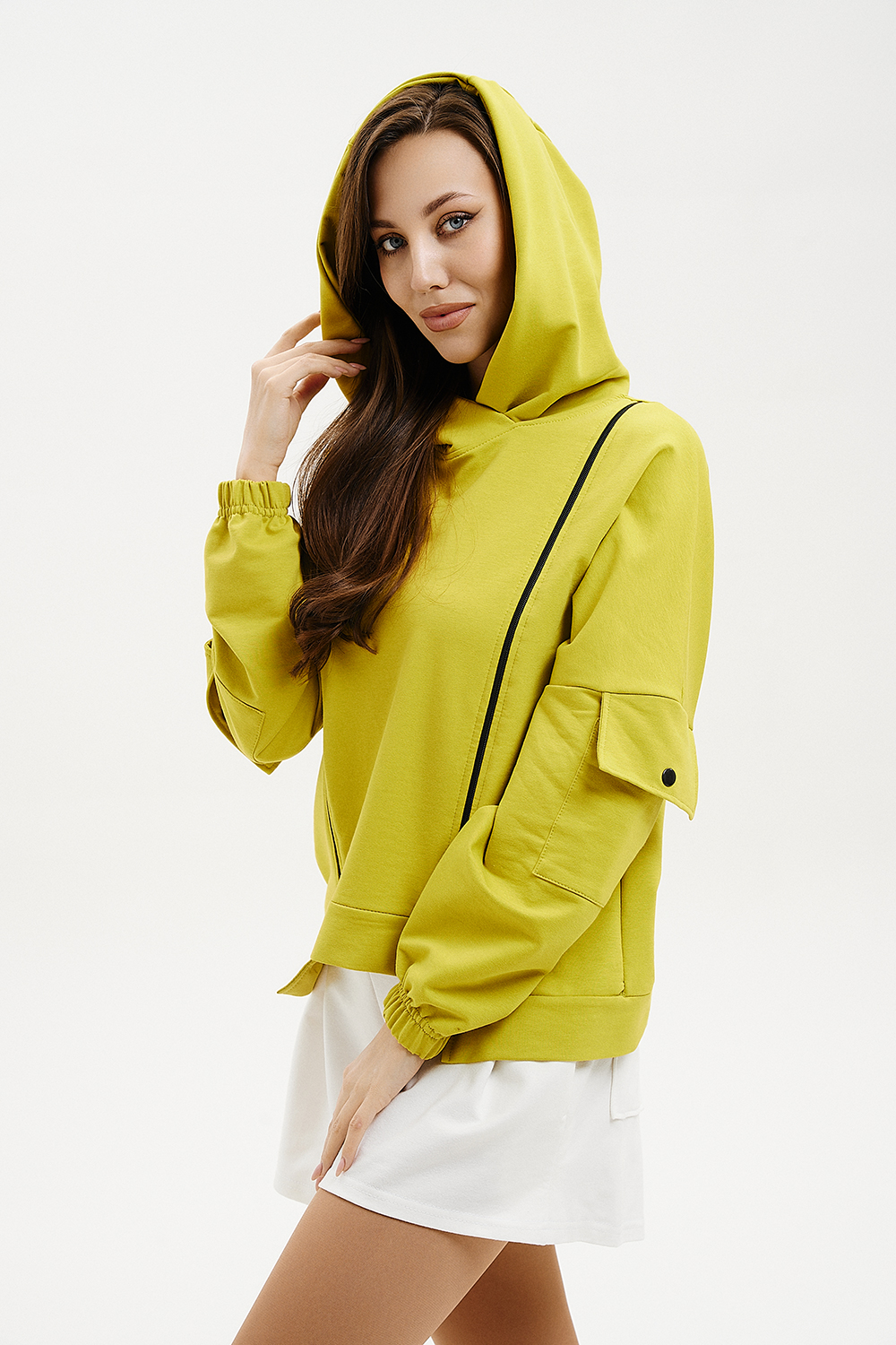 Женская толстовка с двумя молниями, капюшоном, карманами на рукавах. Свободного силуэта для тех, кто ценит комфорт.