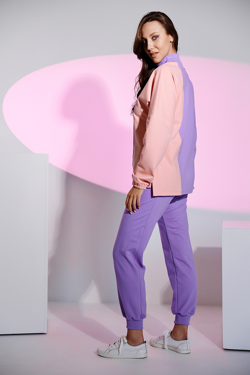 Свитшот женский, модель свободная из контрастных тканей, прямого силуэта. Горловина выполнена из кашкорсе. Рукав со спущенной проймой, манжета на резинке.