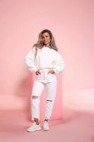 Женская толстовка актуального объема длиной до талии. Рукав реглан широкий, за счет своей ширины, рукав не будет вытягиваться в районе сгиба локтя. Низ рукава и низ толстовки с притачной манжетой и поясом из кашкорсе. Горловина обработана обтачкой из кашкорсе. По краю горловины, проймы и горизонтальным подрезам на рукаве отделочная строчка. Форма рукава реглан и объем толстовки подойдет под любую форму плеча и фигуру, а так же вы смело можете надеть под толстовку, как водолазку, так и классическую рубашку выправив воротничок наружу. Изделие отлично впишется в ваш повседневный гардероб в любой сезон, обеспечит уют и тепло что немаловажно в прохладную погоду. Модель выполнена из гладкокрашеного футера 3-х нитки с начесом. Ткань мягкая, устойчива к истиранию и сминаемости и вы всегда будете иметь аккуратный и ухоженный вид. На фото модель представлена в 46 размере.