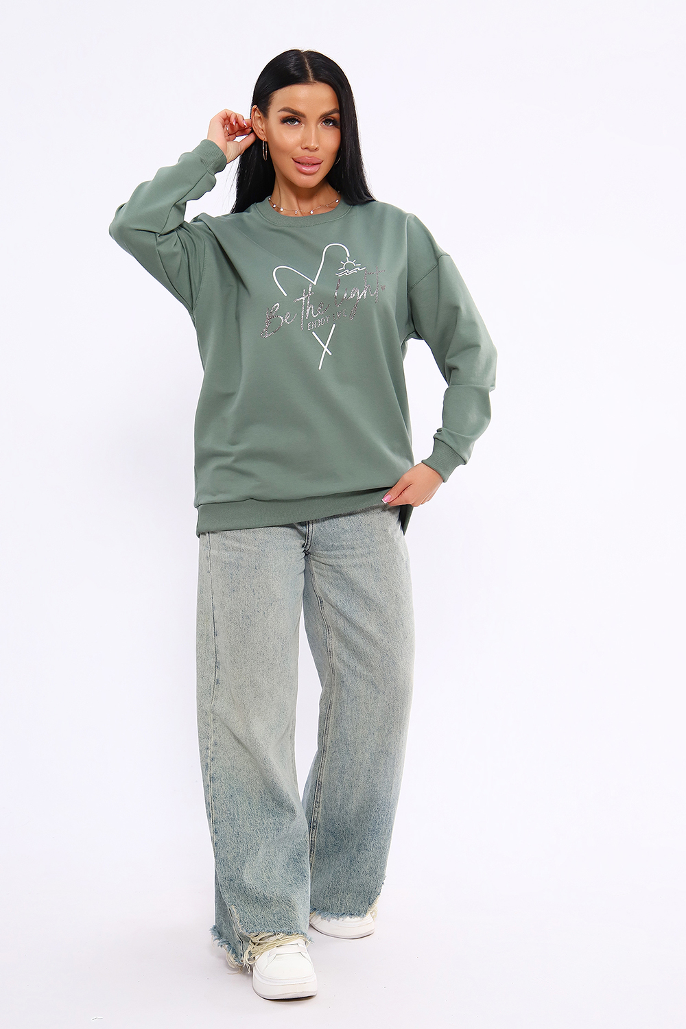 Толстовка с карманами из мягкого футера свободного кроя со спущенной линией плеча. Принт в виде сердечка. Горловина, манжеты и пояс из эластичного кашкорсе.