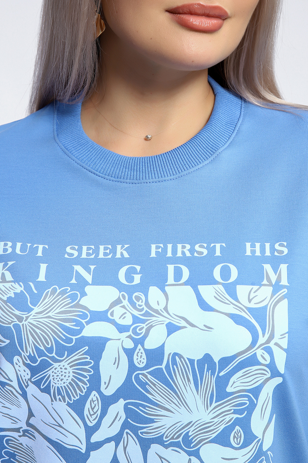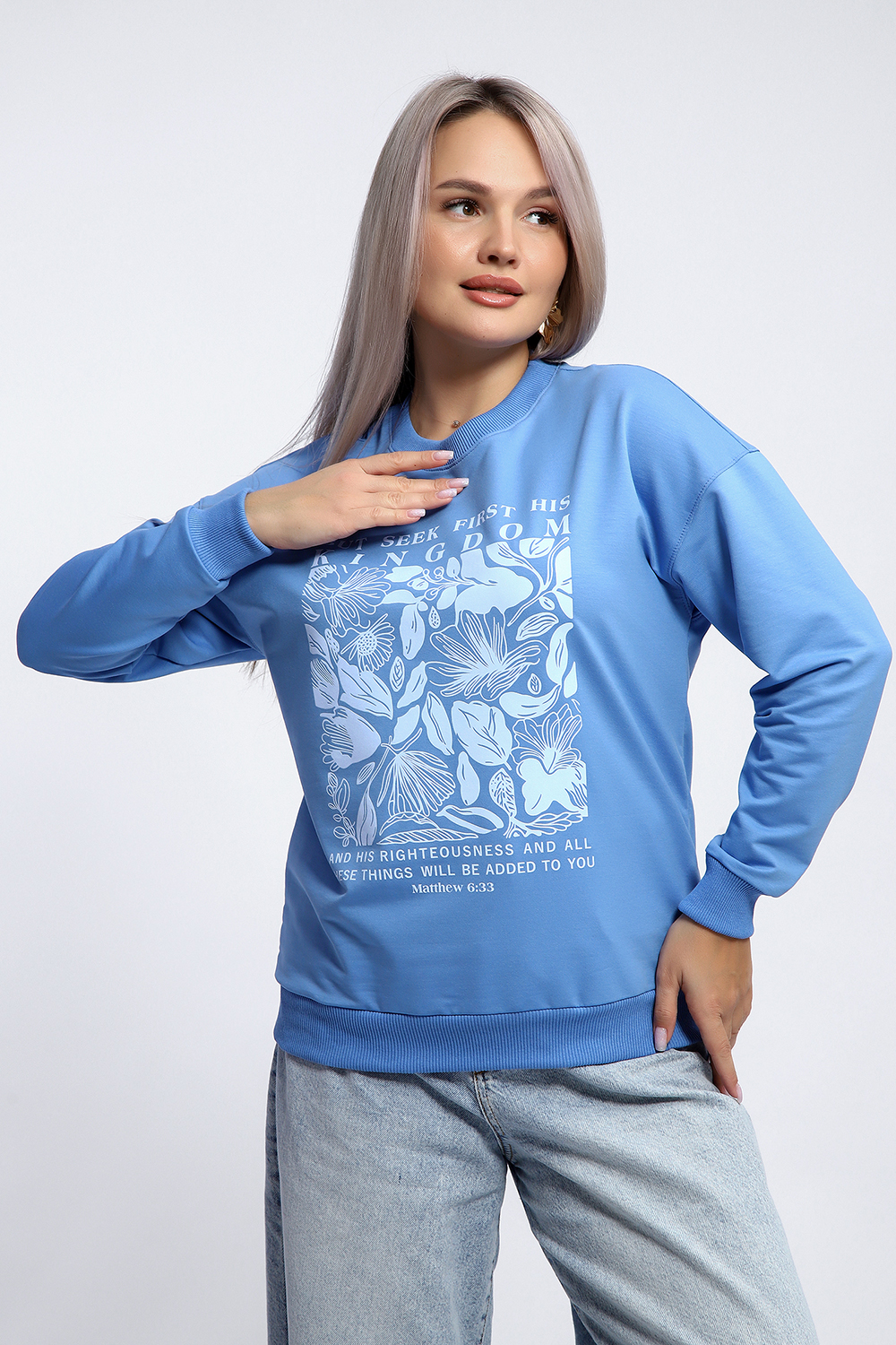 Толстовка свободного кроя "оверсайз" со спущенной линией плеча прекрасный вариант для прохладной погоды! Мягкое, эластичное кашкорсе в тон ткани использовано для отделки горловины, манжет и пояса. На полочке декоративный принт.