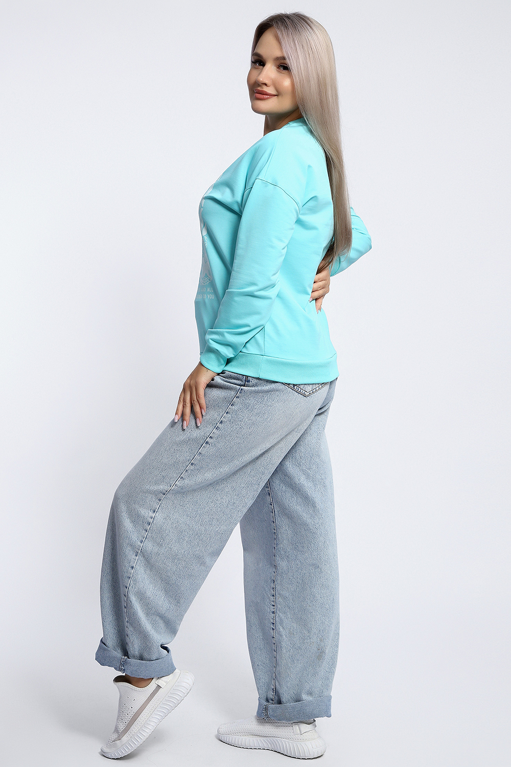 Толстовка свободного кроя "оверсайз" со спущенной линией плеча прекрасный вариант для прохладной погоды! Мягкое, эластичное кашкорсе в тон ткани использовано для отделки горловины, манжет и пояса. На полочке декоративный принт.