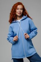 Толстовка утепленная, прямая, свободная, на молнии, с удлиненной спинкой, с капюшоном. Рукав длинный, на эластичном манжете. Полочка и спинка с фигурными кокетками. В нижней части полочки расположены удобные накладные карманы.