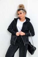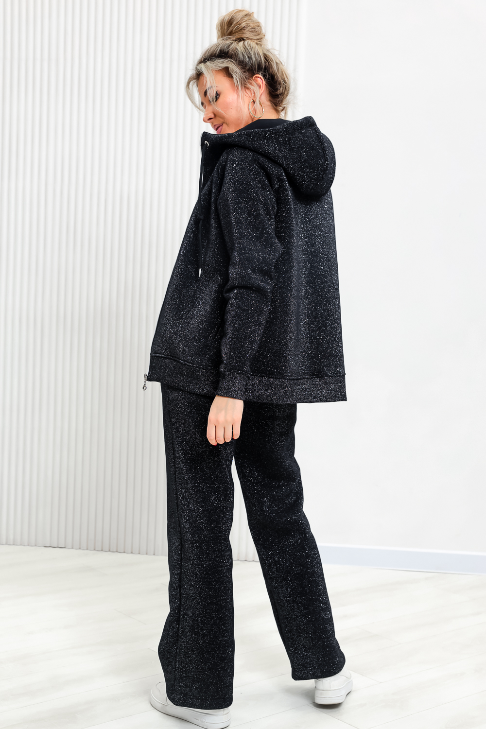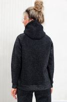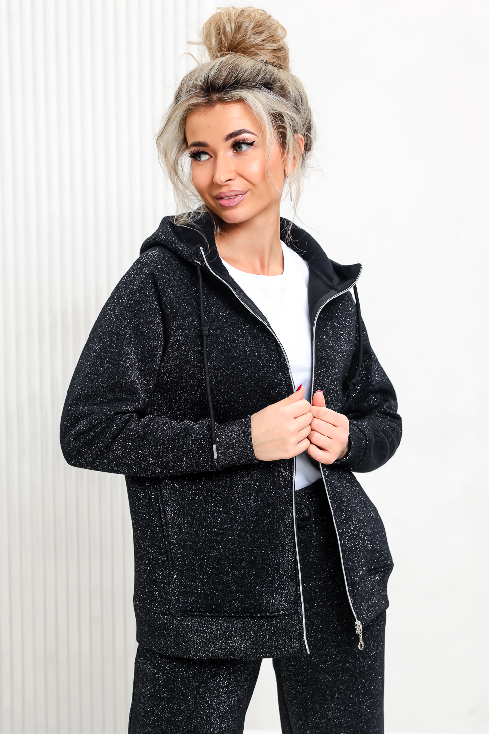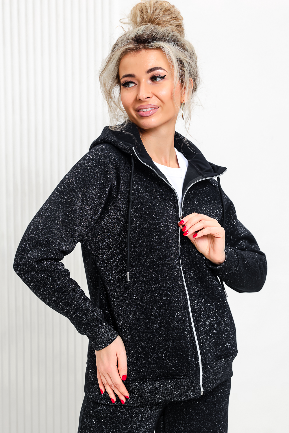 Толстовка прямая, с капюшоном, на молнии. Рукав реглан, длинный. На полочке в рельефном шве обработаны карманы. Низ толстовки и манжеты рукавов выполнены из эластичного полотна.