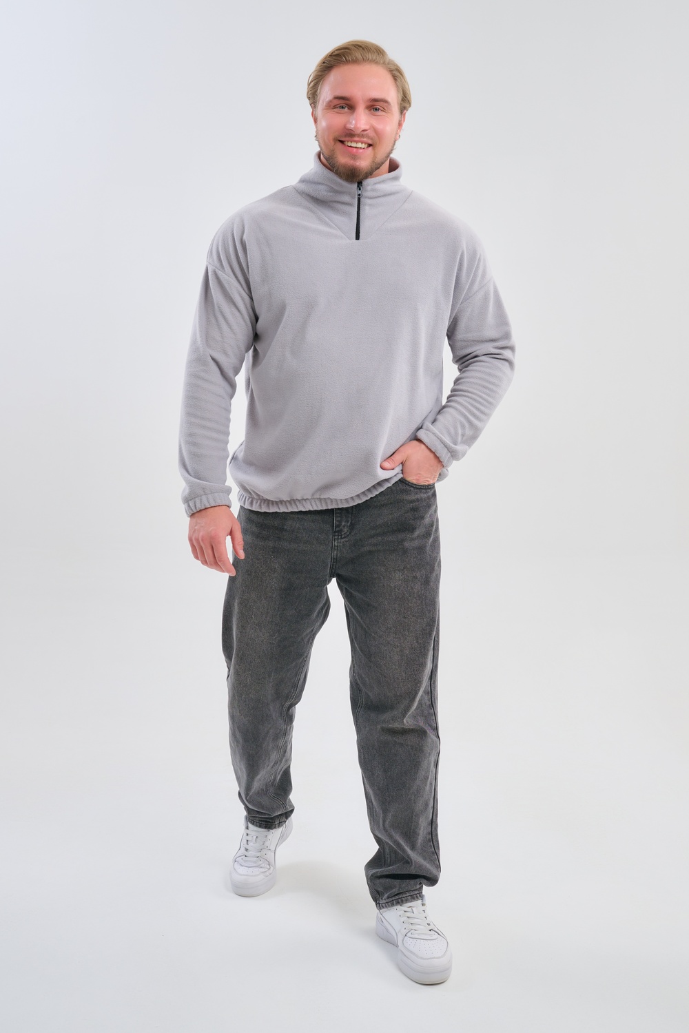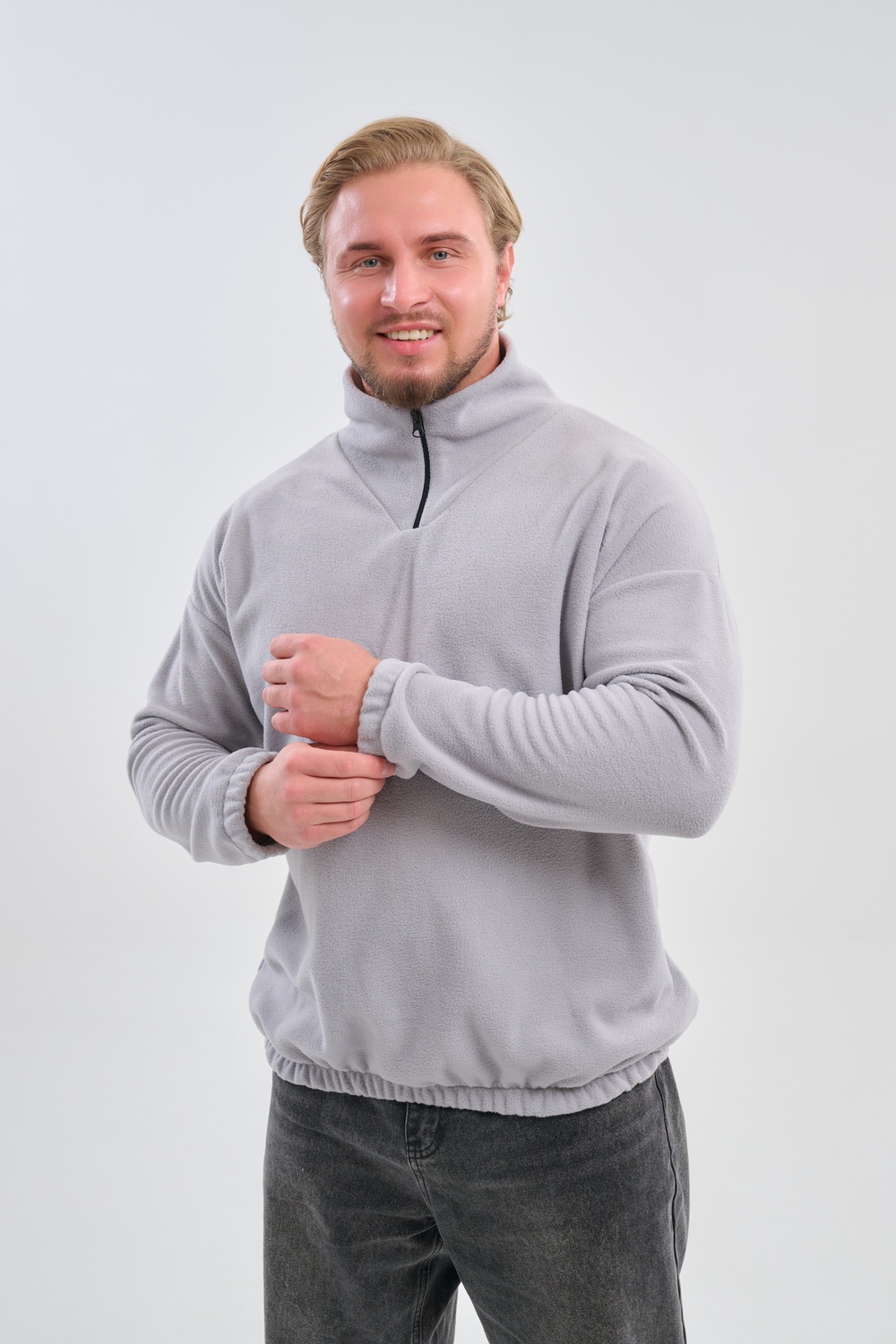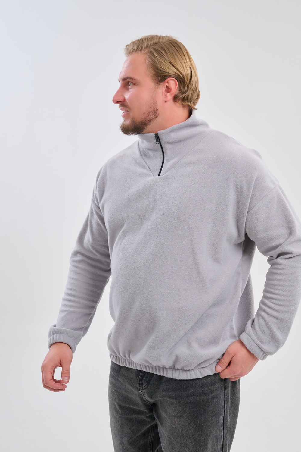 Мужская толстовка выполнена из приятного на ощупь флиса из 100% полиэстера, обладающего отличными теплоизоляционными свойствами и обеспечивающего максимальный комфорт при любых погодных условиях. Особенность модели заключается в том, что по низу изделия и на манжетах вшиты резинки, обеспечивающие плотное прилегание, сохранение формы изделия и защиту от проникновения холода. Горловина представлена формой стойки, дополненной надежным замком-молнией, позволяя владельцу самостоятельно выбирать уровень открытости воротника и создавать стильный образ в зависимости от ситуации. Изысканный дизайн сочетается с удобством эксплуатации, превращая данную модель в идеальный выбор для повседневного использования и занятий спортом в холодное и прохладное время года.
