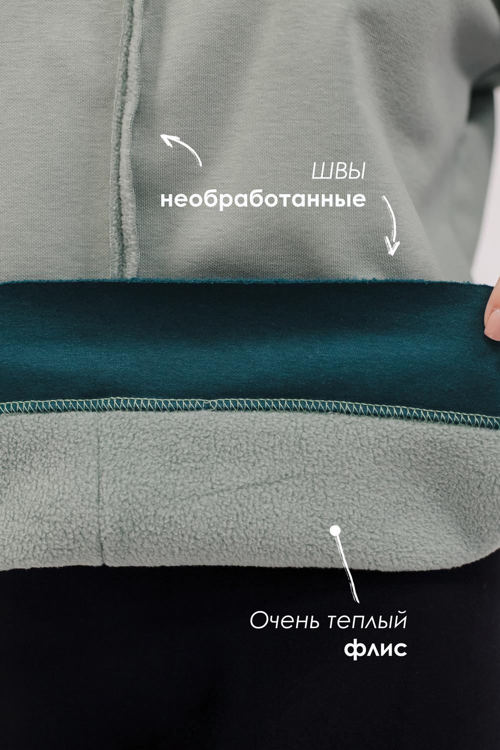 Толстовка оверсайз выполнена из приятной на теле и практичной ткани футер с мехом. Состав 80% хлопок и 20% полиэстер обеспечивает комфорт, хорошую воздухопроницаемость и долгий срок службы изделия. Размер с 44 по 58 благодаря свободному крою идеально подходит для разных типов фигуры и легко сидит как в расслабленном оверсайз, так и в более аккуратном силуэте. Модель толстовки сконструирована по авторскому дизайну из двух расцветок. Основной цвет дополняет другая расцветка на рукавах, по низу изделия и чуть на воротнике. Первый элемент это воротник с необработанным краем, который добавляет современной графики образу, а рукав на резинке удерживает тепло и придаёт аккуратную посадку. Толстовка тёплая и приятная к телу, она выполнена с начесом для дополнительного уюта и комфорта в холодное время года. Начес не линяет и не образует каташки, что сохраняет презентабельный вид даже после многократных стирок и активной носки. Однотонная расцветка делает вещь универсальной базовой частью гардероба и даёт свободу для стильных комплектов. Модель выдержана в стиле y2k, поэтому отлично смотрится в сочетании с ретро-элементами и современными акцентами. Свитшот прекрасно вписывается в спортивный стиль и одновременно служит надёжной базовой вещью для повседневной носки. Её легко комбинировать с джинсами или леггинсами, а также с юбками и шортами для более смелых образов. Эта толстовка — практичное решение для тех, кто ценит тепло, комфорт и актуальный городской стиль в одном изделии.
