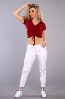 Топ женский укороченный с регулируемой кулиской по центру полочки. Данная модель выполнена из эластичного трикотажного полотна вискоза. Горловина V-образная, обработана окантовкой из основной ткани. Идеально подходит для повседневной носки