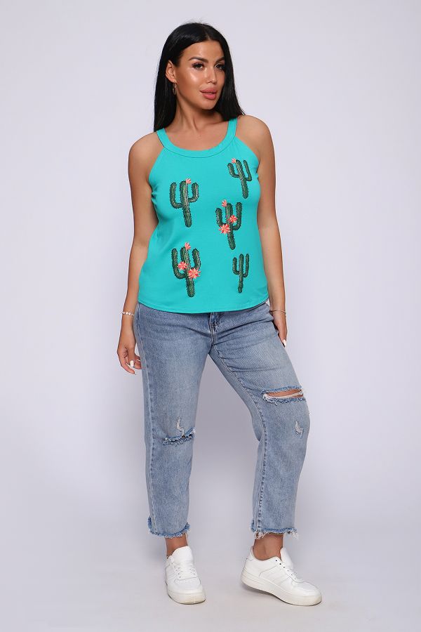Топ женский с оригинальным принтом. Летний сезон дает возможность насладиться легким вариантом топа с широкими бретелями, выполненным из струящейся вискозы. Ткань- необыкновенно легкая, воздушная, приятная к телу, не сковывает движений, деликатно облегая фигуру. Цветовая гамма данной модели позволит соответствовать окружающей яркости природы, луговому раздолью, морским пляжам.
