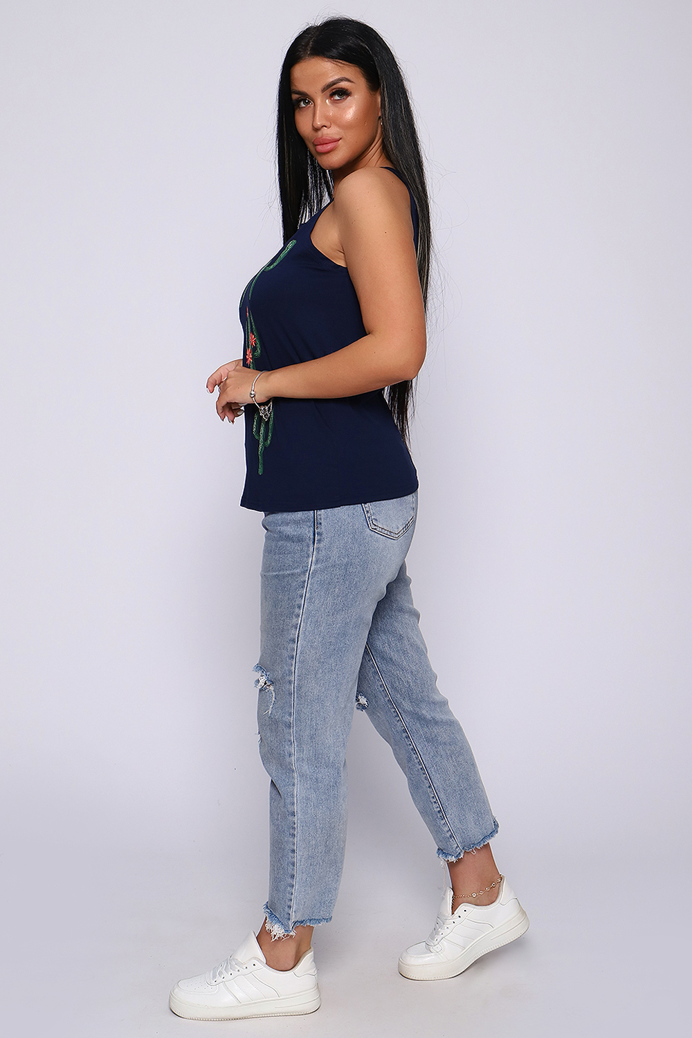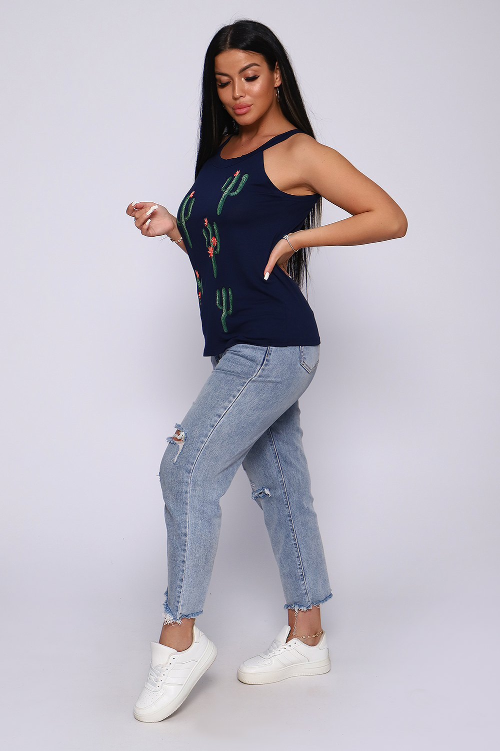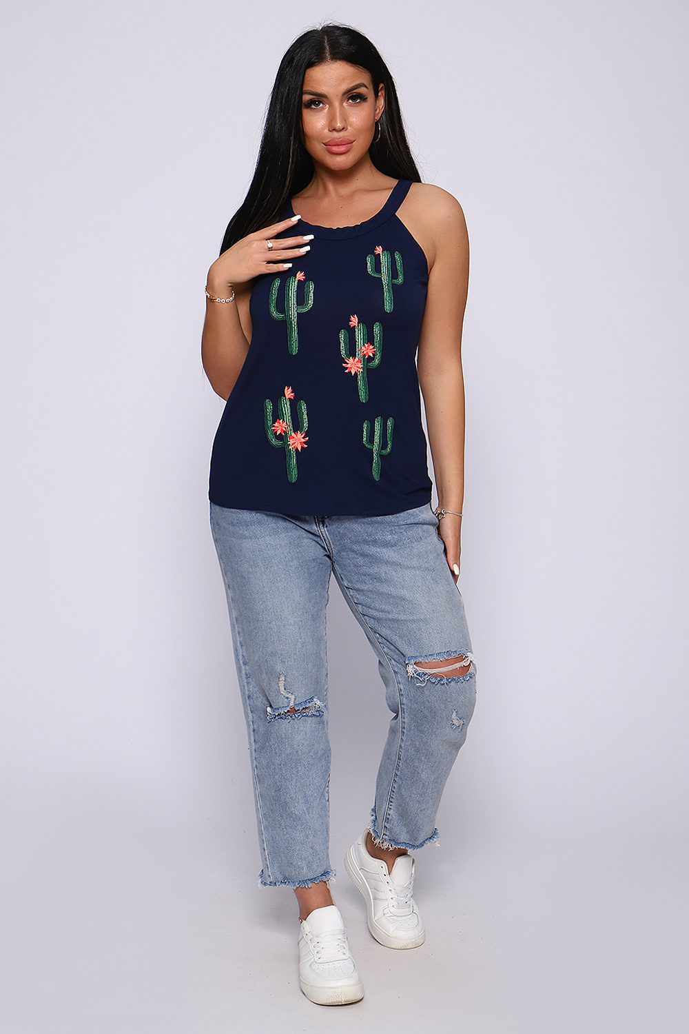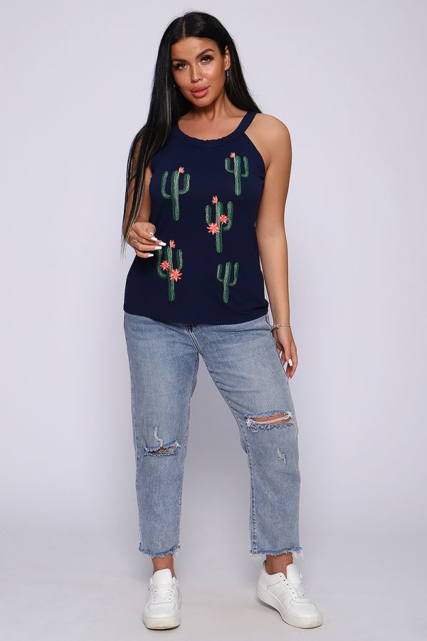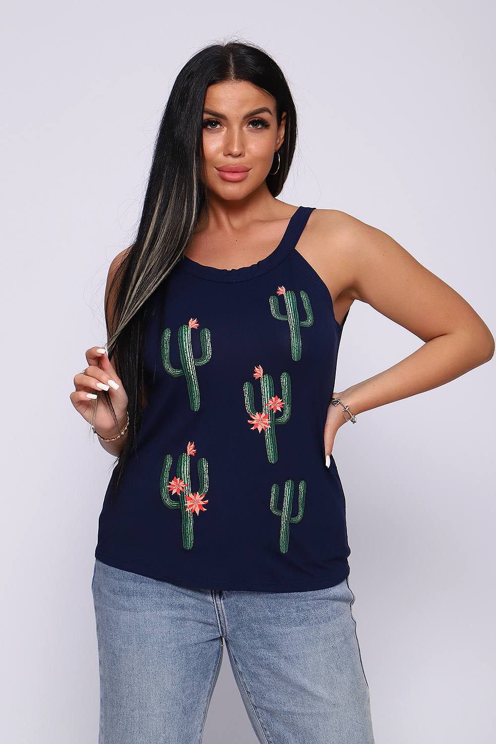 Топ женский с оригинальным принтом. Летний сезон дает возможность насладиться легким вариантом топа с широкими бретелями, выполненным из струящейся вискозы. Ткань- необыкновенно легкая, воздушная, приятная к телу, не сковывает движений, деликатно облегая фигуру. Цветовая гамма данной модели позволит соответствовать окружающей яркости природы, луговому раздолью, морским пляжам.
