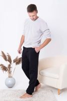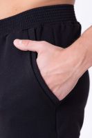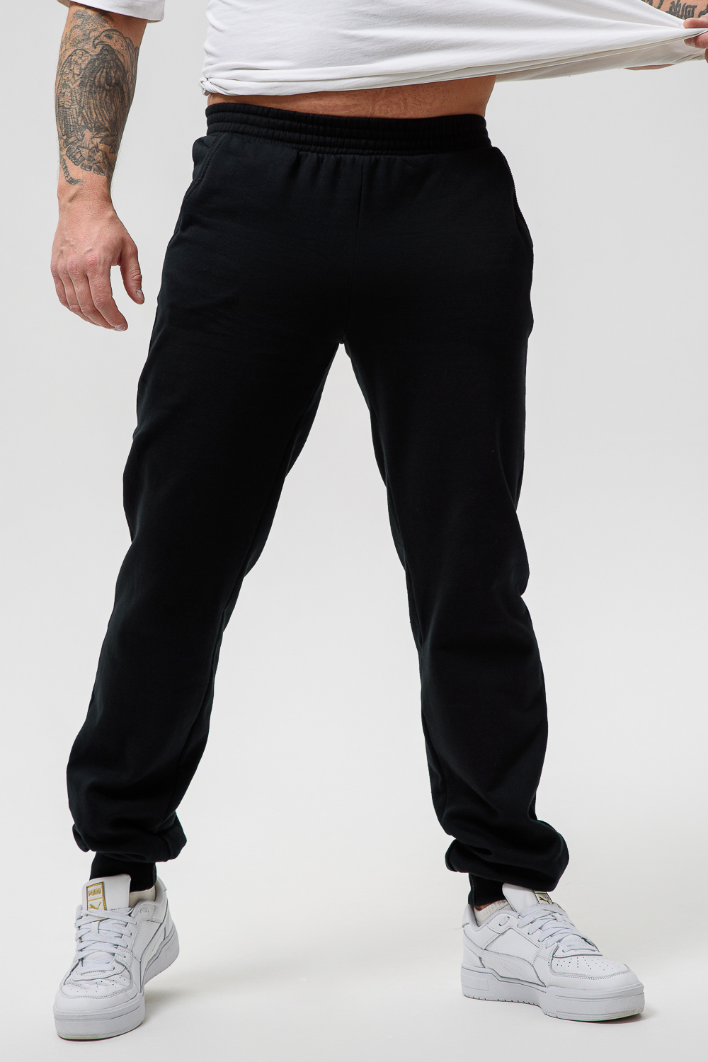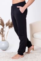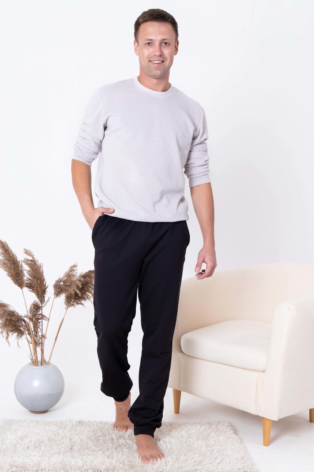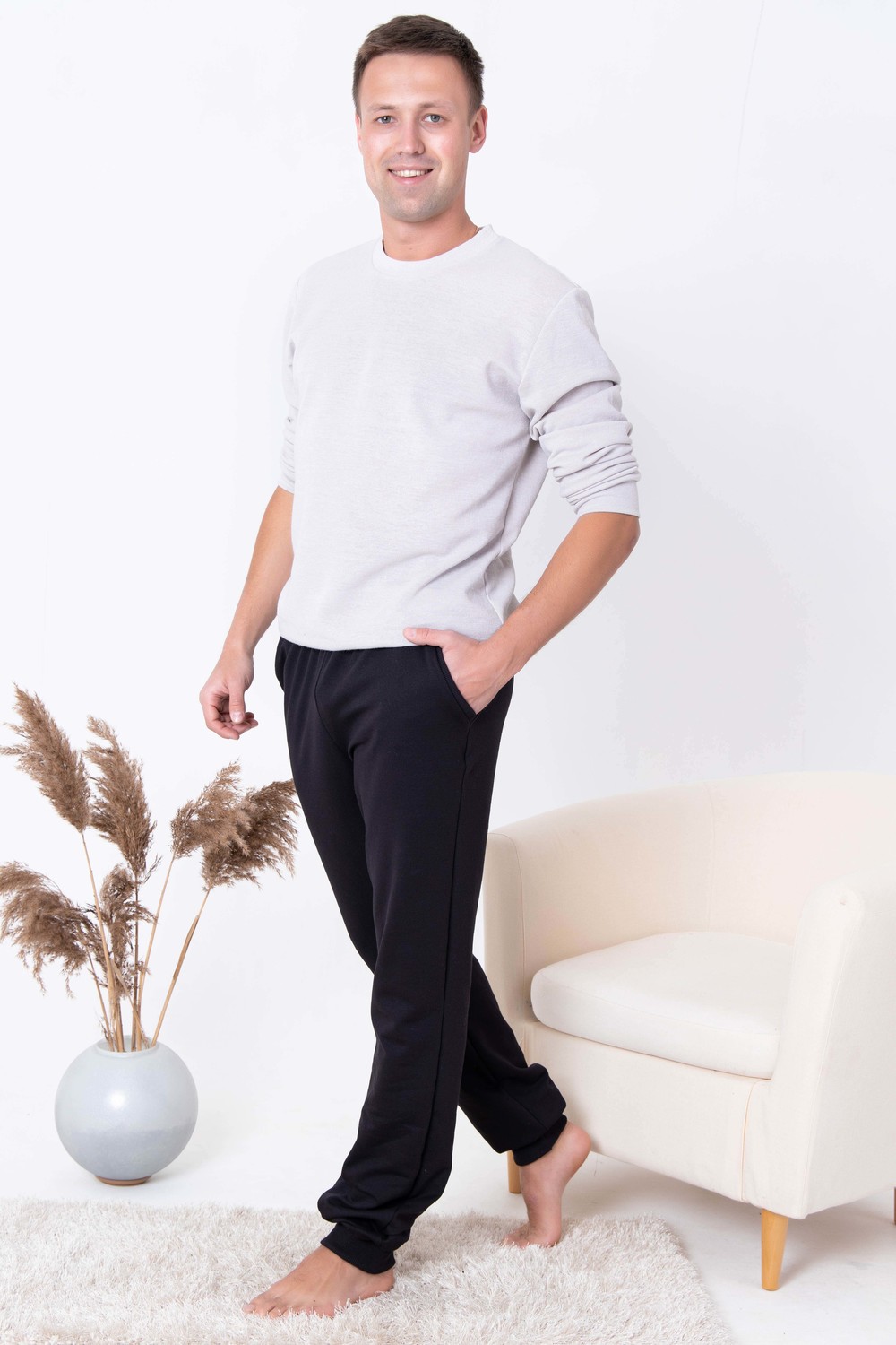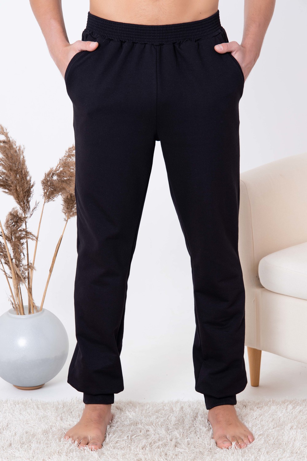 Мужское трико из футера с начесом. Пояс на резинке, по бокам имеются карманы, однотонная черная расцветка, прямой покрой. Возможно под брендом Натали.