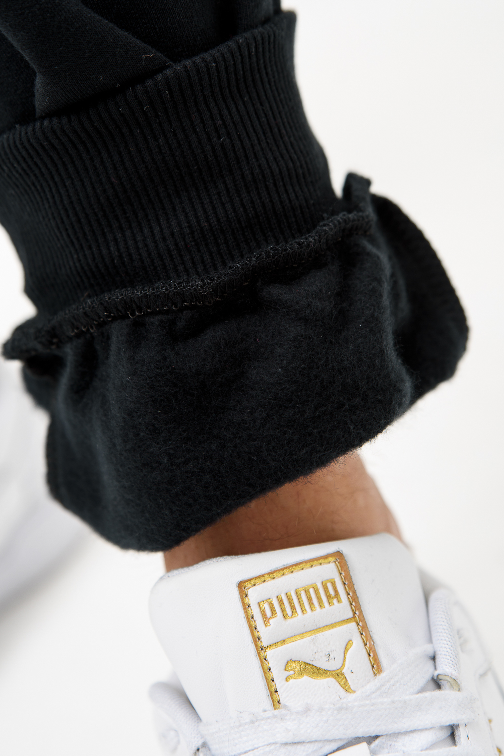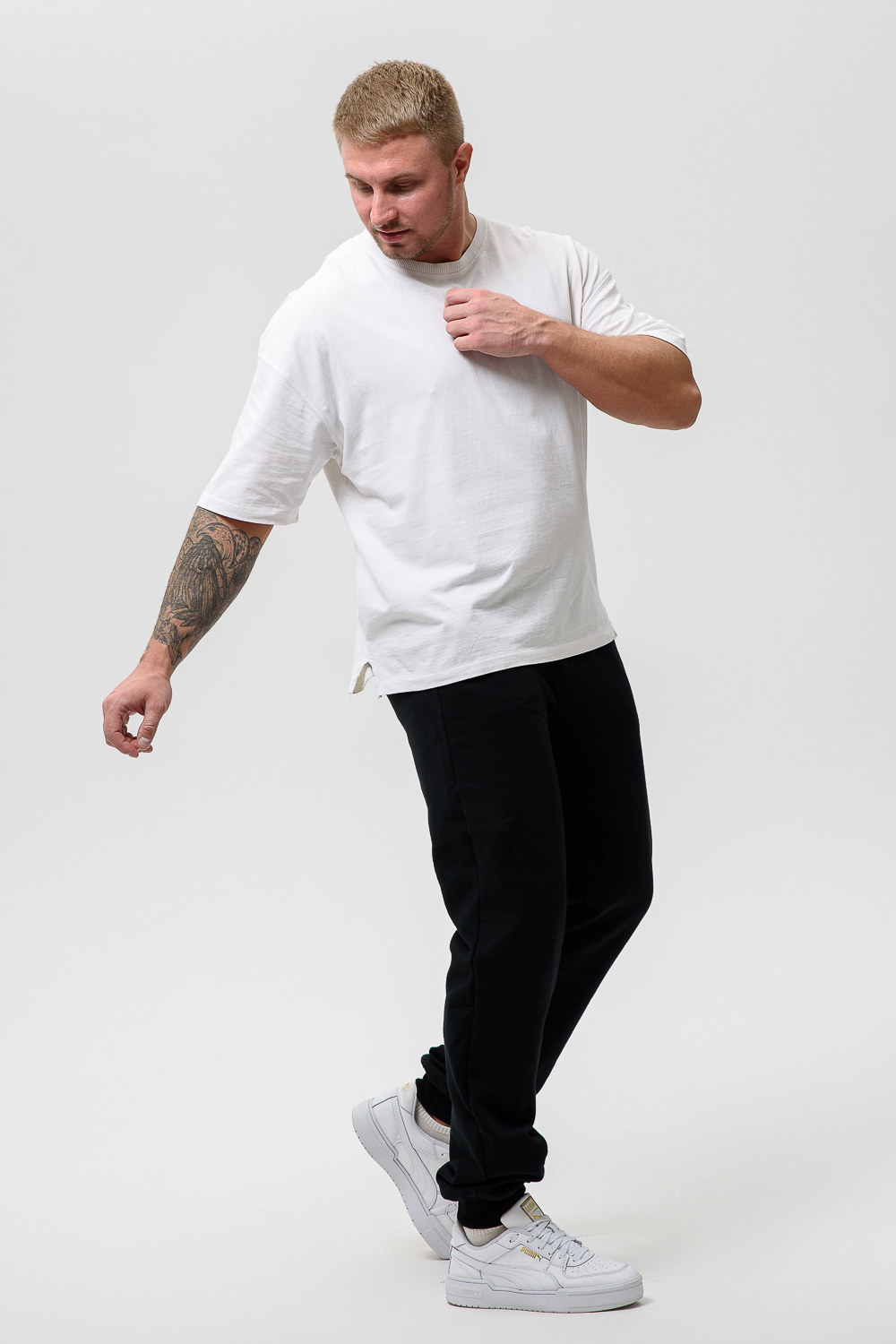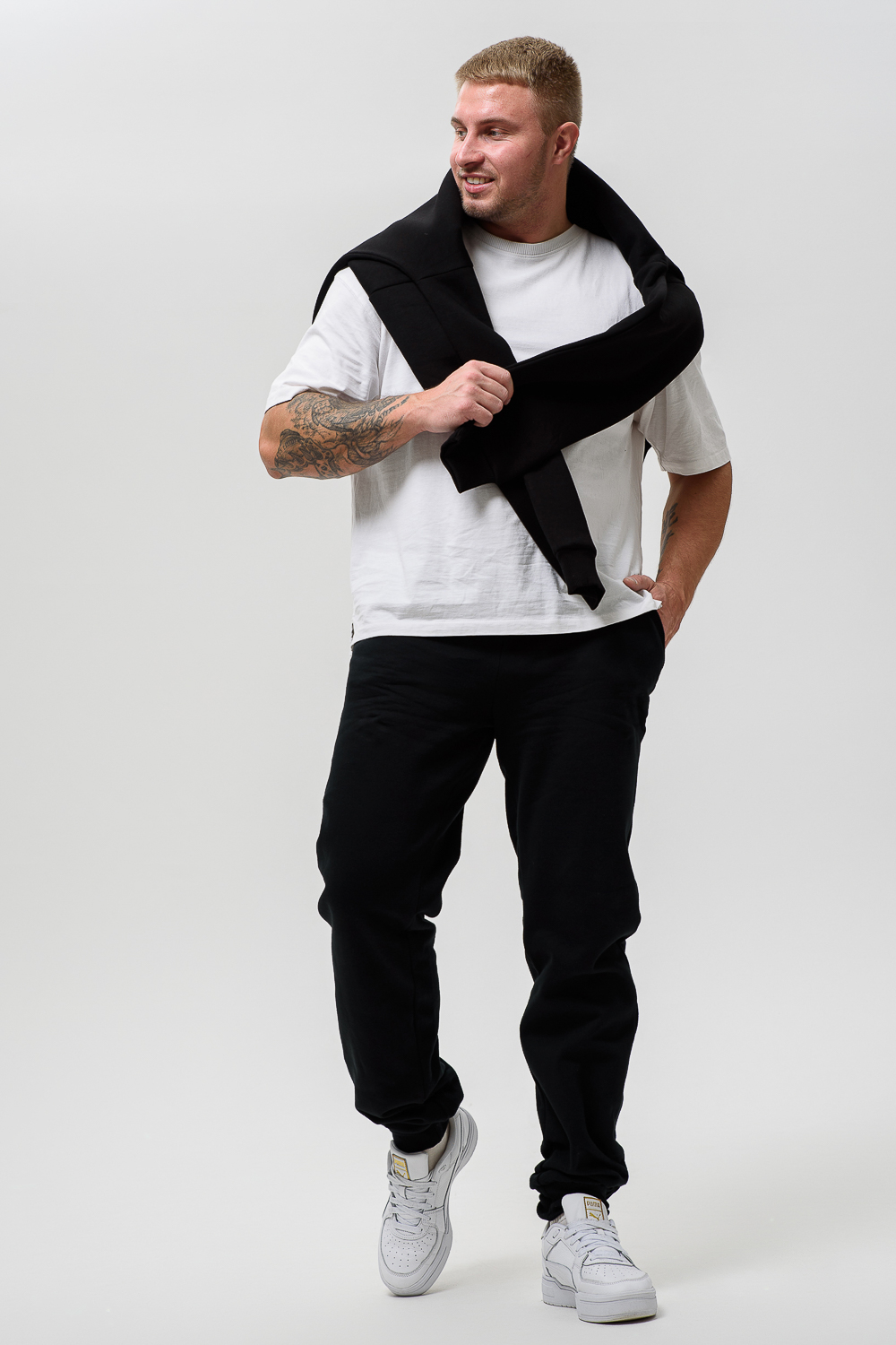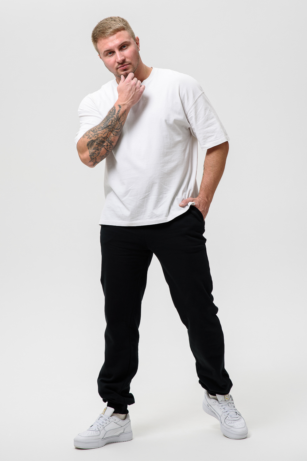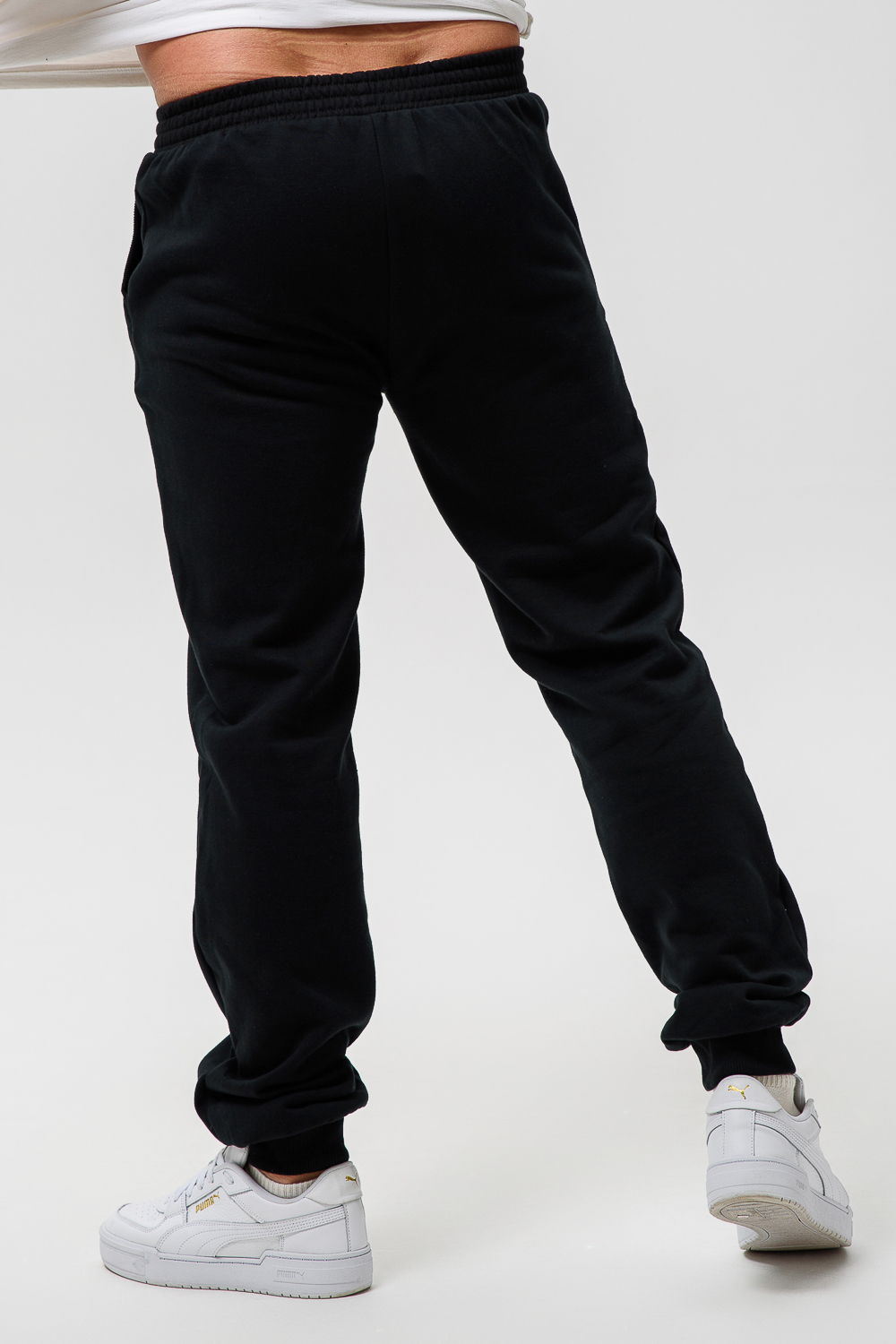 Мужское трико из футера с начесом. Пояс на резинке, по бокам имеются карманы, однотонная черная расцветка, прямой покрой. Возможно под брендом Натали.