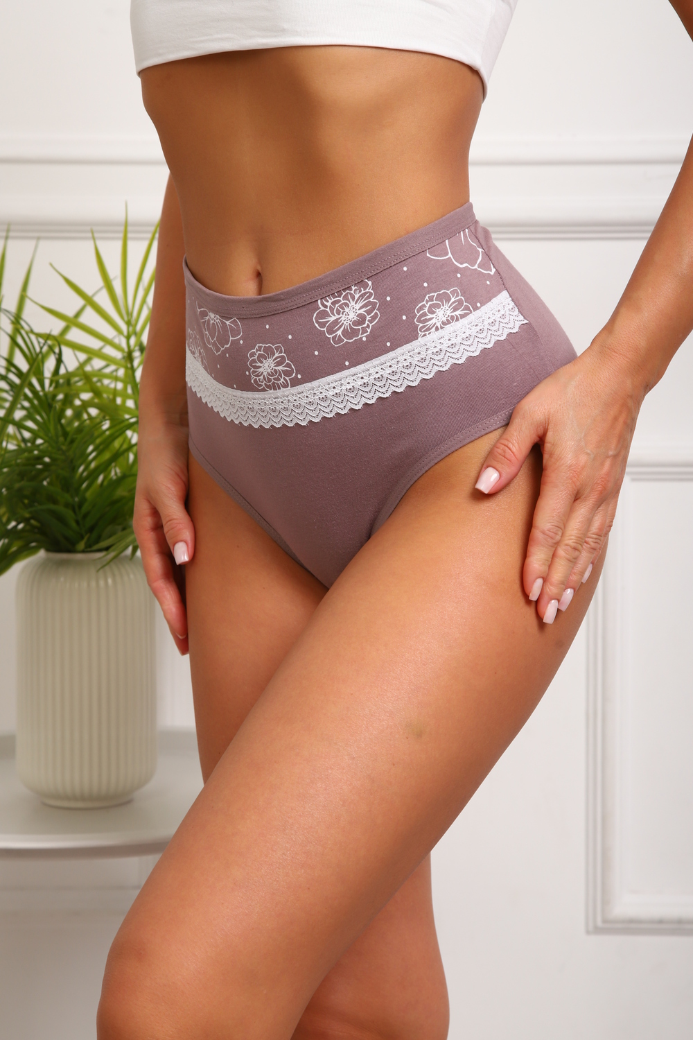 Повседневные трусики выполнены из 95% Хлопка и 5% Лайкры. Очень мягкие и удобные. Трусики дополнены узким и мягким кружевом. Производство Китай.