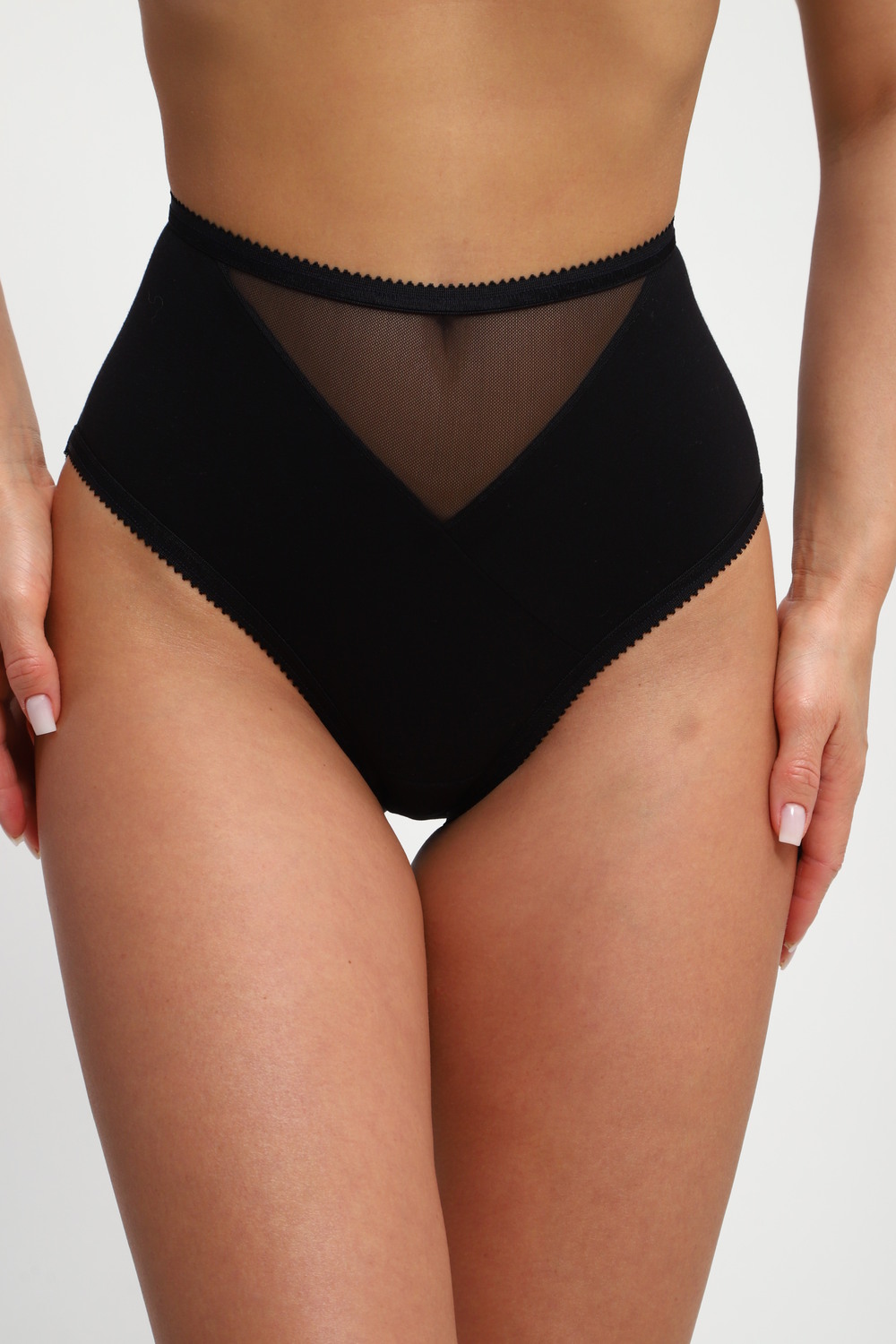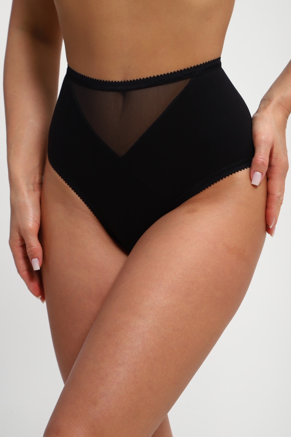 Трусики женские с высокой посадкой, выполнены из приятной и мягкой ткани с вставочкой из трикотажной сеточки. Смотрятся, очень женственно и изящно. Комфортные и удобные. Резиночки мягкие.
