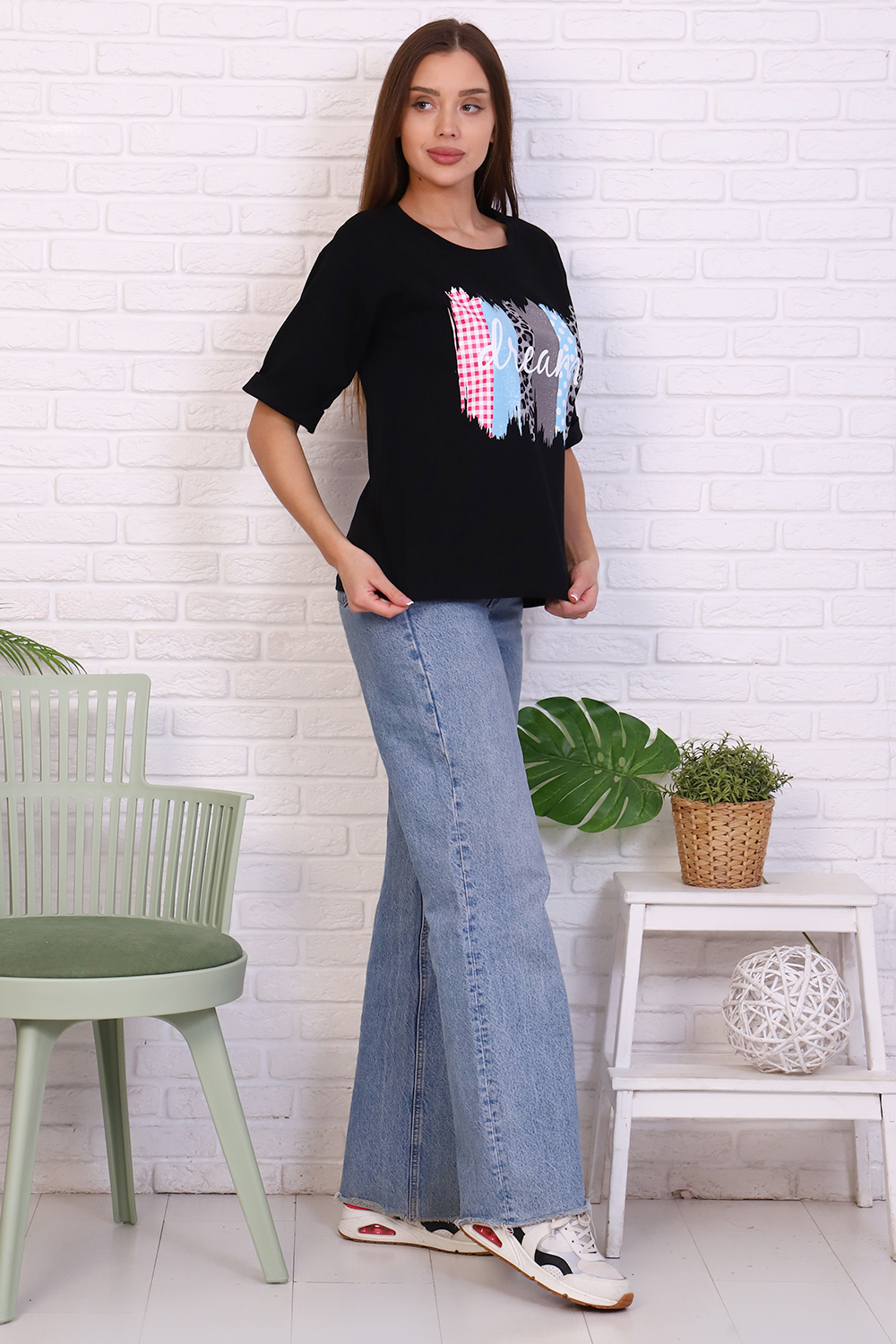 Туника удлиненная женская в стиле oversize имеет неповторимый свободный крой. Этот стиль подходит для любой женщины, ведь он может скрыть недостатки фигуры и подчеркнуть ее достоинства. Натуральный состав из 100% хлопка обеспечит вам комфорт и хорошее настроение. Удобный рукав до локтя. Принт с блестками не оставит никого равнодушным. Невозможно описать удобство и прелесть вещей в этом стиле, чтобы это понять, их просто нужно носить. Данную модель туники можно надеть как с классической юбкой и брюками, так и с джинсами и леггинсами.