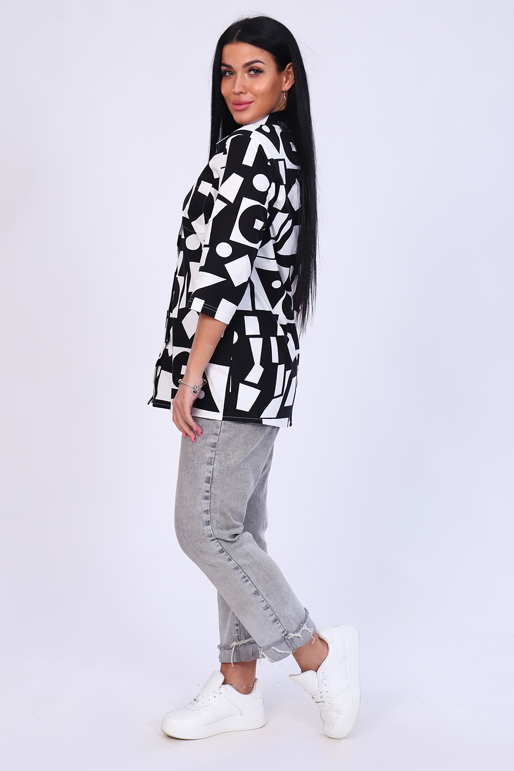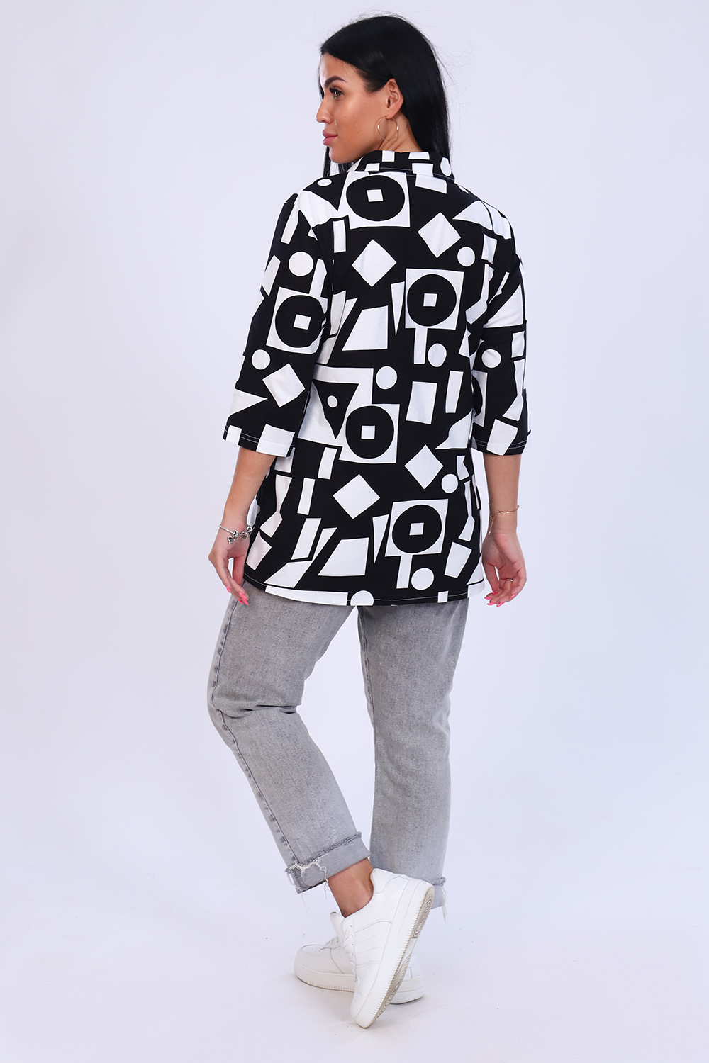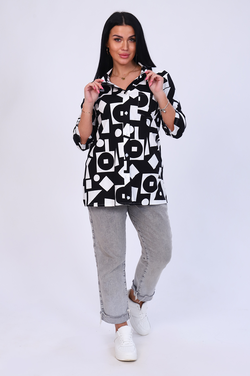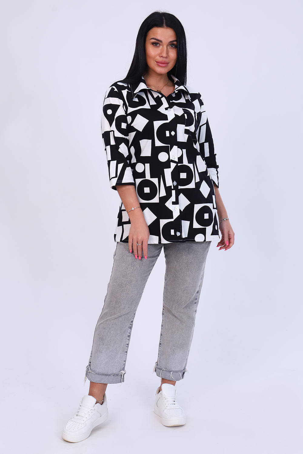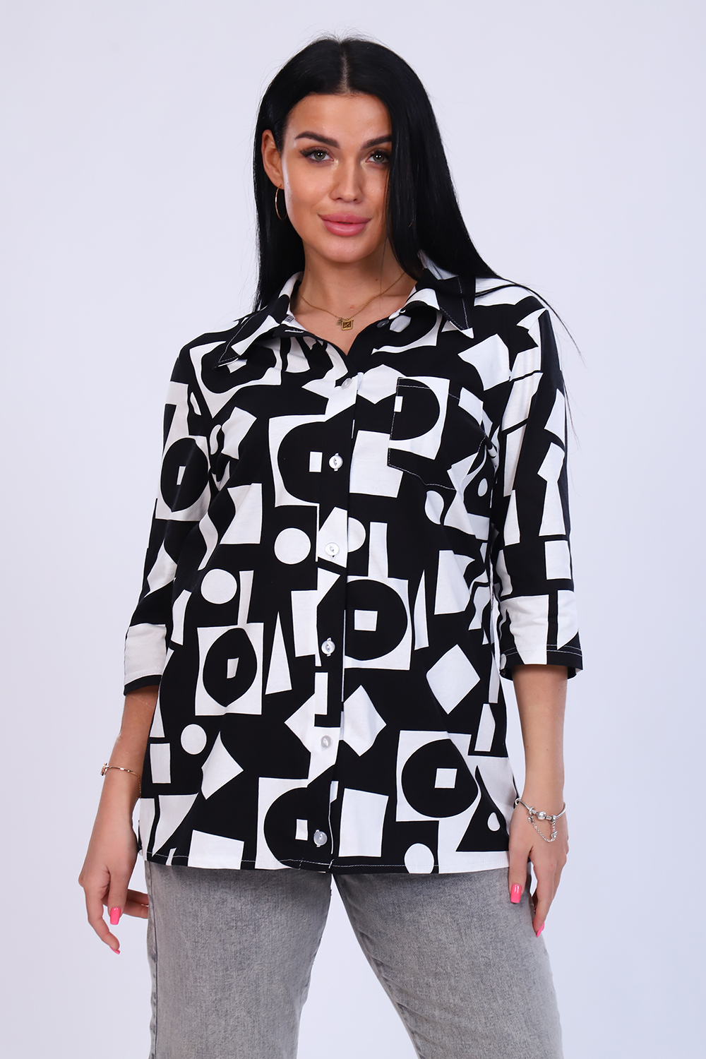 Рубашка женская выполнена из мягкого трикотажного полотна 100% хлопок. Рубашка с нагрудным карманом и рукавом 3/4. Предназначена для повседневной носки дома, на работу, на дачу или прогулку. Рубашка женская больших размеров не сковывает движения, приятна к телу, отлично сочетается с любым низом - брюки, леггинсы, бриджи или джинсы. Дышащий материал подарит Вам комфорт и уют. Подходит для женщин и девушек разной комплекции благодаря широкому размерному ряду. Отличный подарок маме и бабушке.