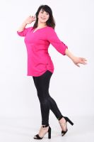Туника женская с рукавом 3/4. Данная модель выполнена из трикотажного полотна кулирка (хлопок 100%). Горловина обработана обтачкой. Низ изделия округлый. По бокам изделия и внизу на рукавах присутствуют хлястики с пуговками. Отличная модель для отдыха и прогулок.